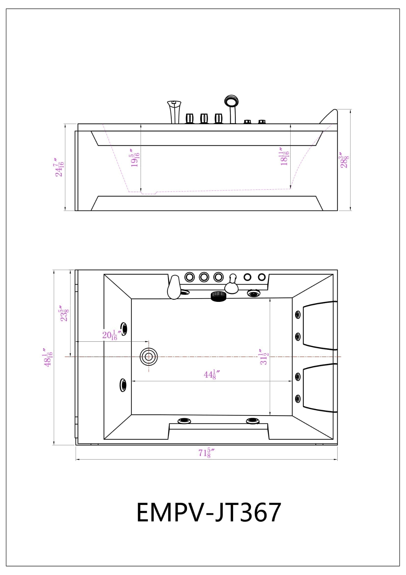 72 in. Luxury 2-Person Hydromassage Bathtub- Empava-72JT367LED