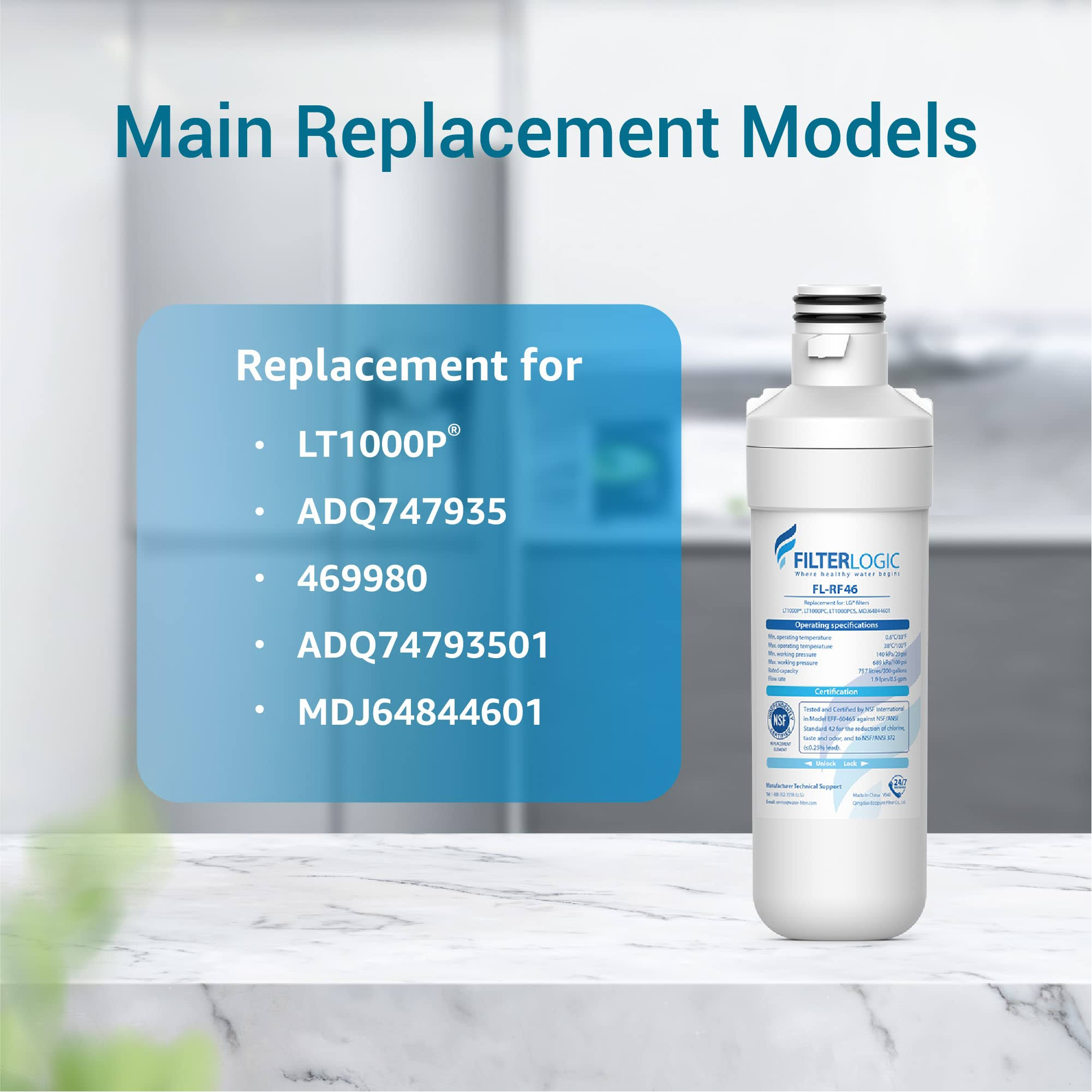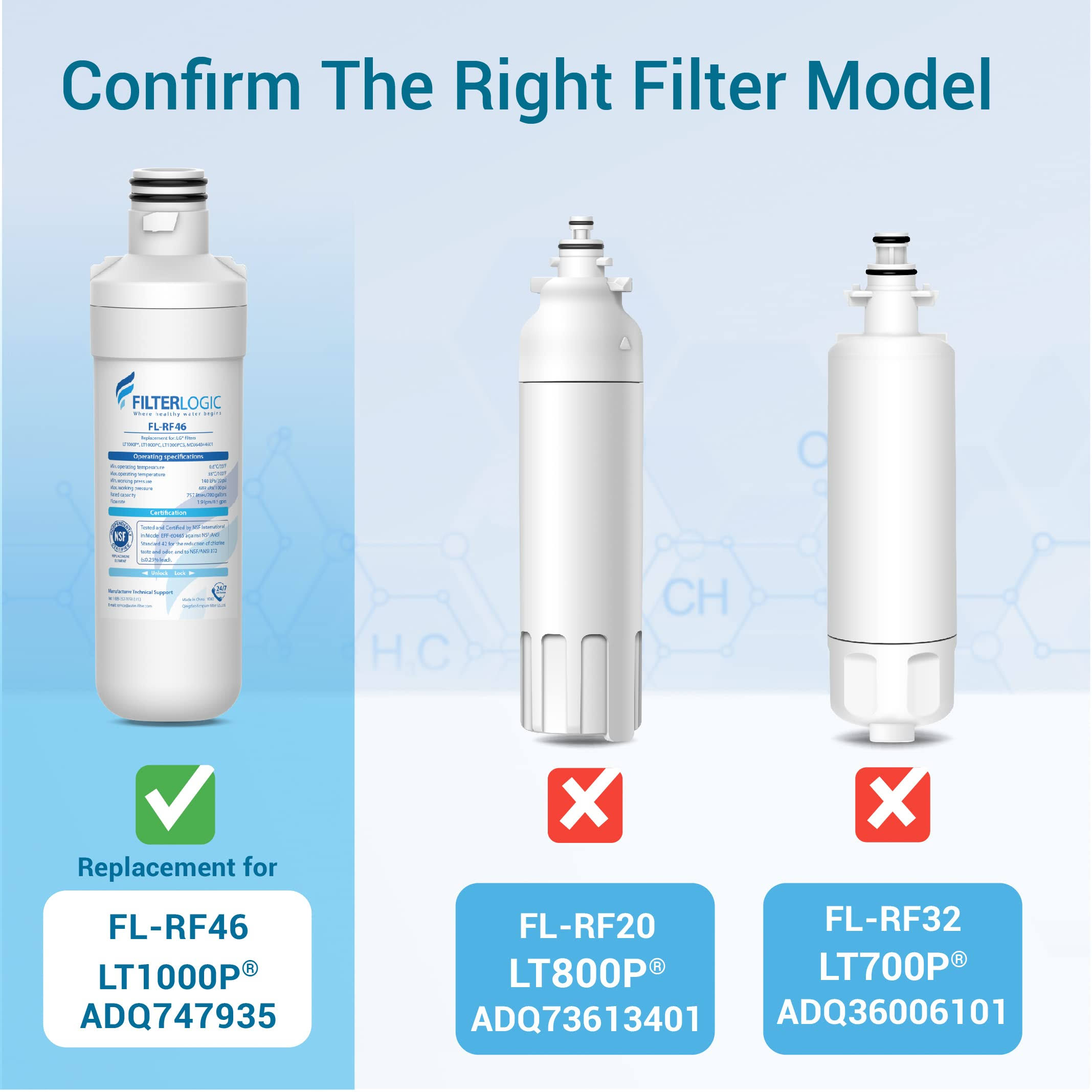 Filterlogic LT1000PC ADQ747935 MDJ64844601 NSF Certified Refrigerator Water Filter and Air Filter, Replacement for LG LT1000P , LT1000PC, LT-1000PC