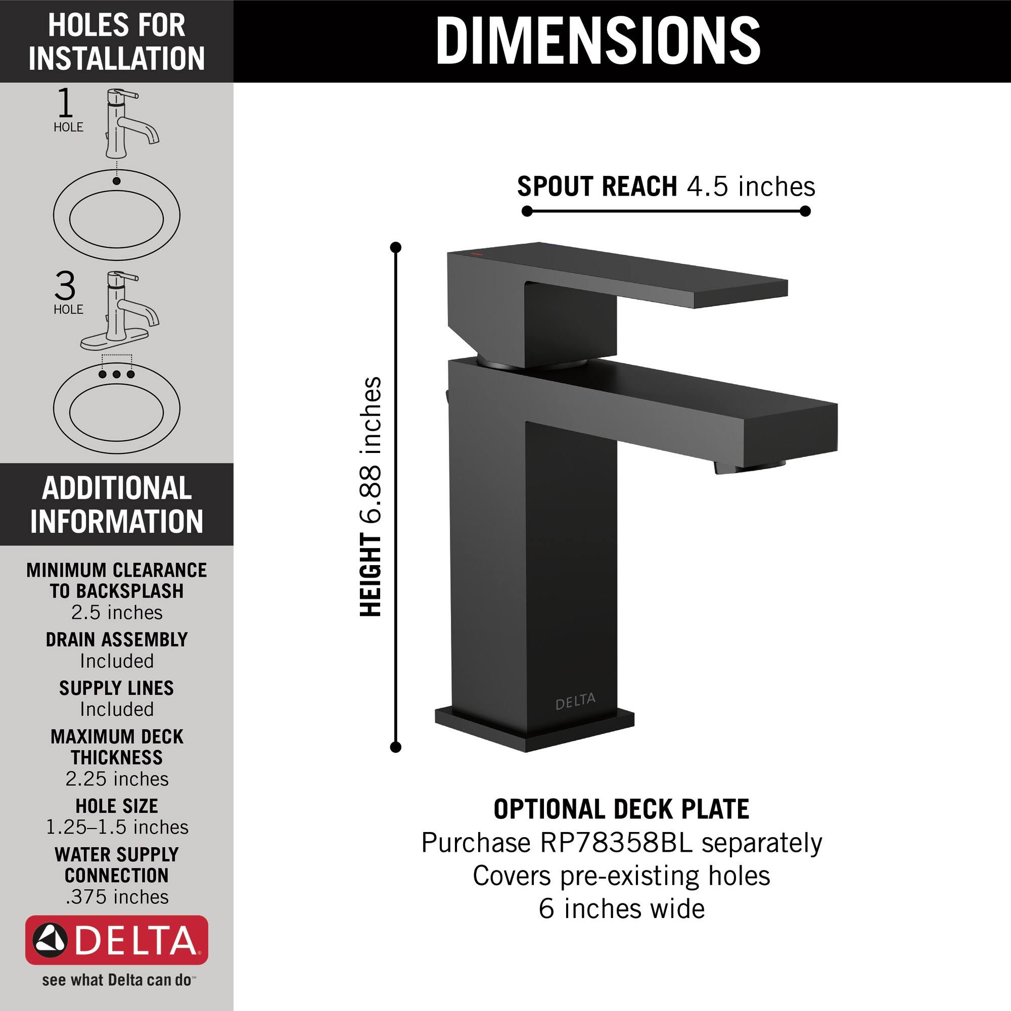 Delta 567LF BLGPM PP Modern Single Handle Lavatory Faucet in Matte Black
