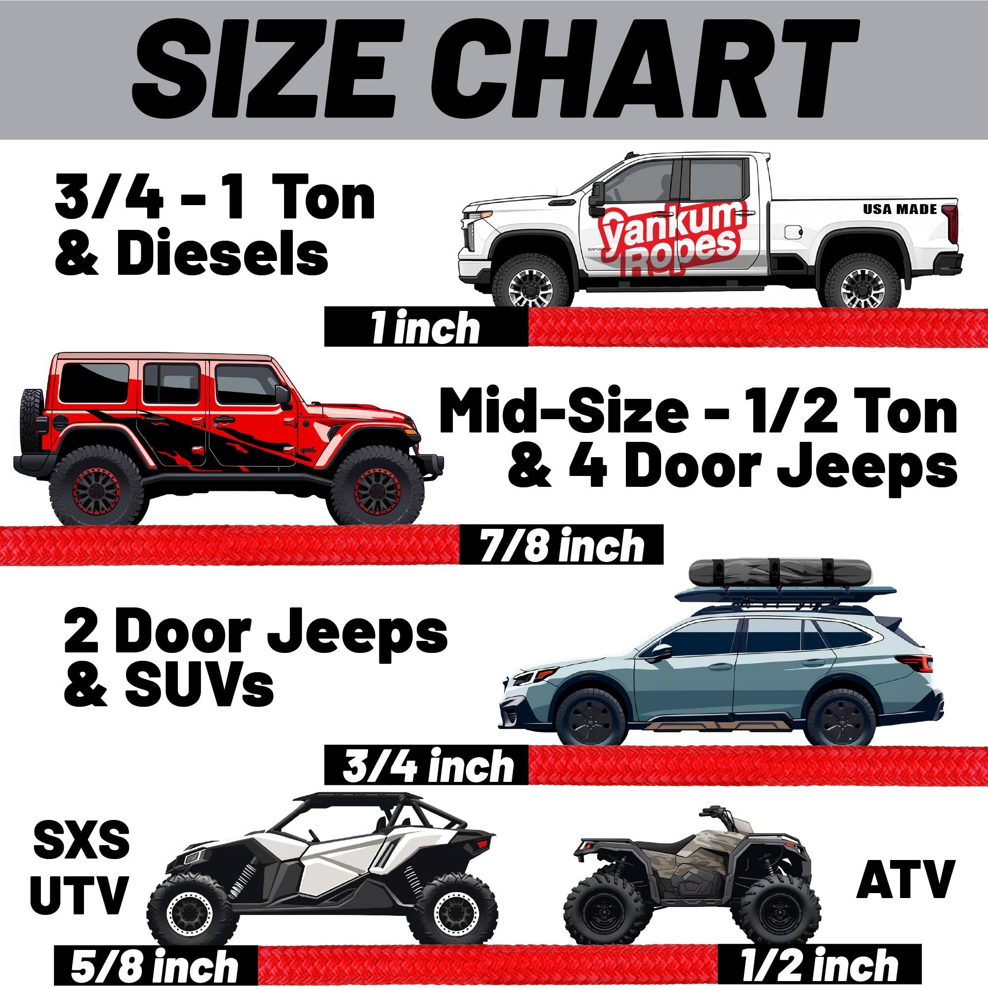 Yankum Ropes 3/4" Kinetic Recovery Rope- SxS, Small Suv, Crossover