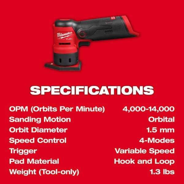 Milwaukee 2531-20-48-11-2440 M12 Fuel 12-Volt Lithium-Ion Brushless Cordless Orbital Detail Sander w/XC 4.0 Ah Battery Pack