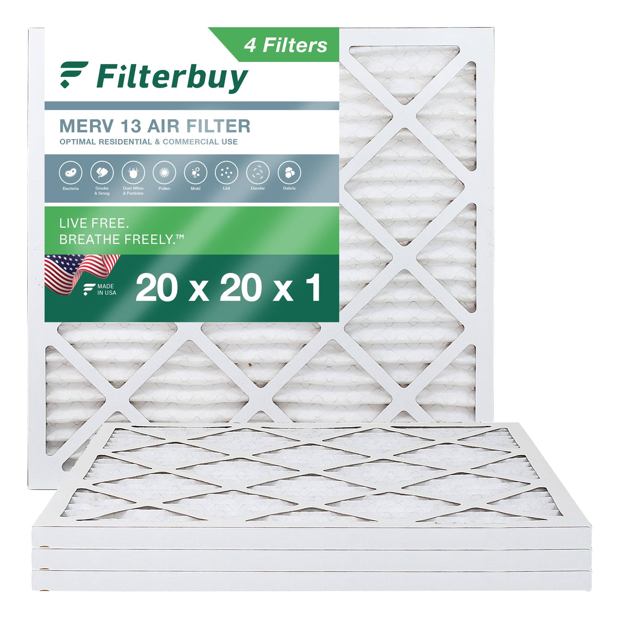 Filterbuy 20x20x2 MERV 13 Pleated HVAC AC Furnace Air Filters (4-Pack)