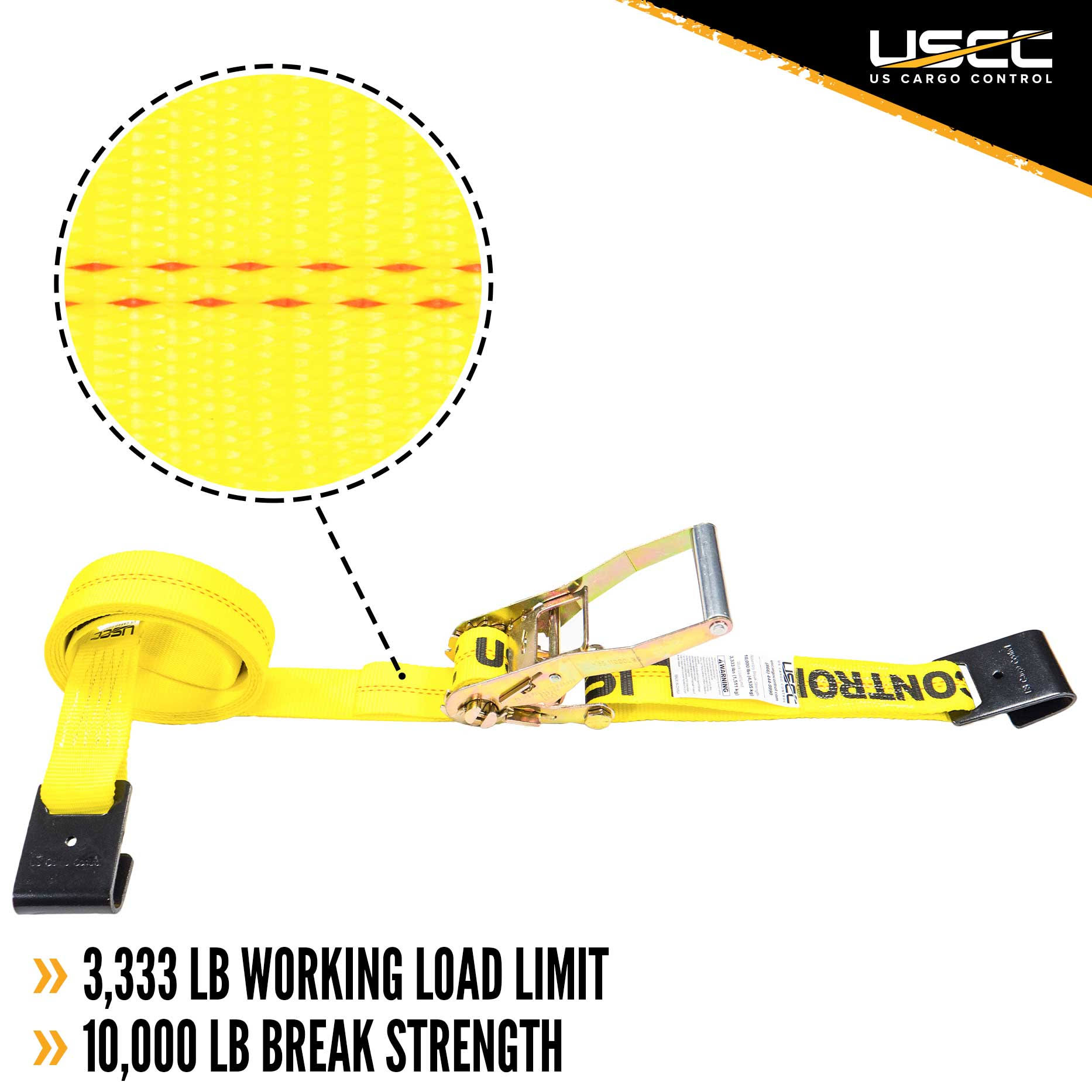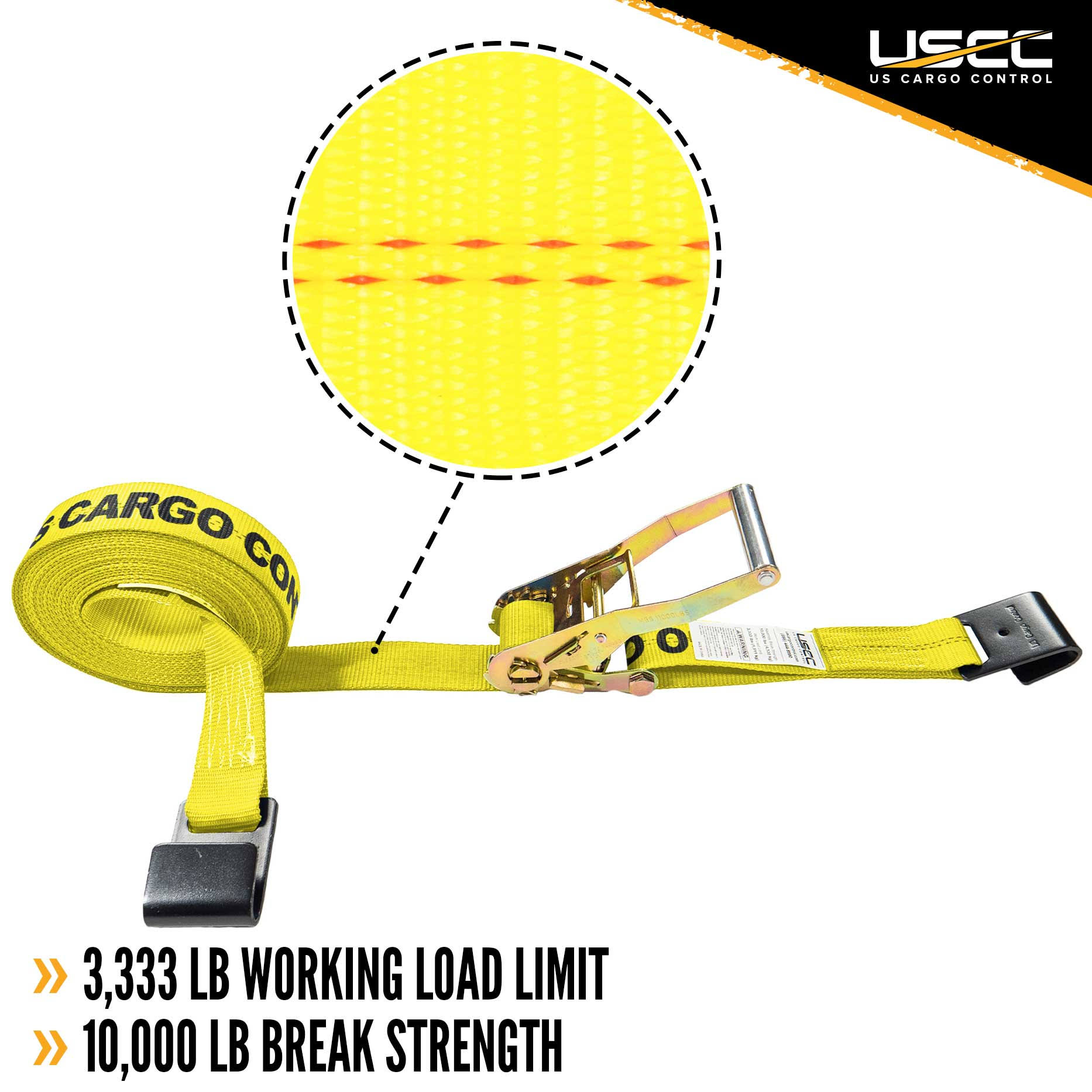 US Cargo Control- 2 x 12 Ratchet Strap- Flat Hook Ratchet Strap- 2 inch Wide x 12 Foot Long- Yellow Ratchet Strap- Dependable Strap for Cargo