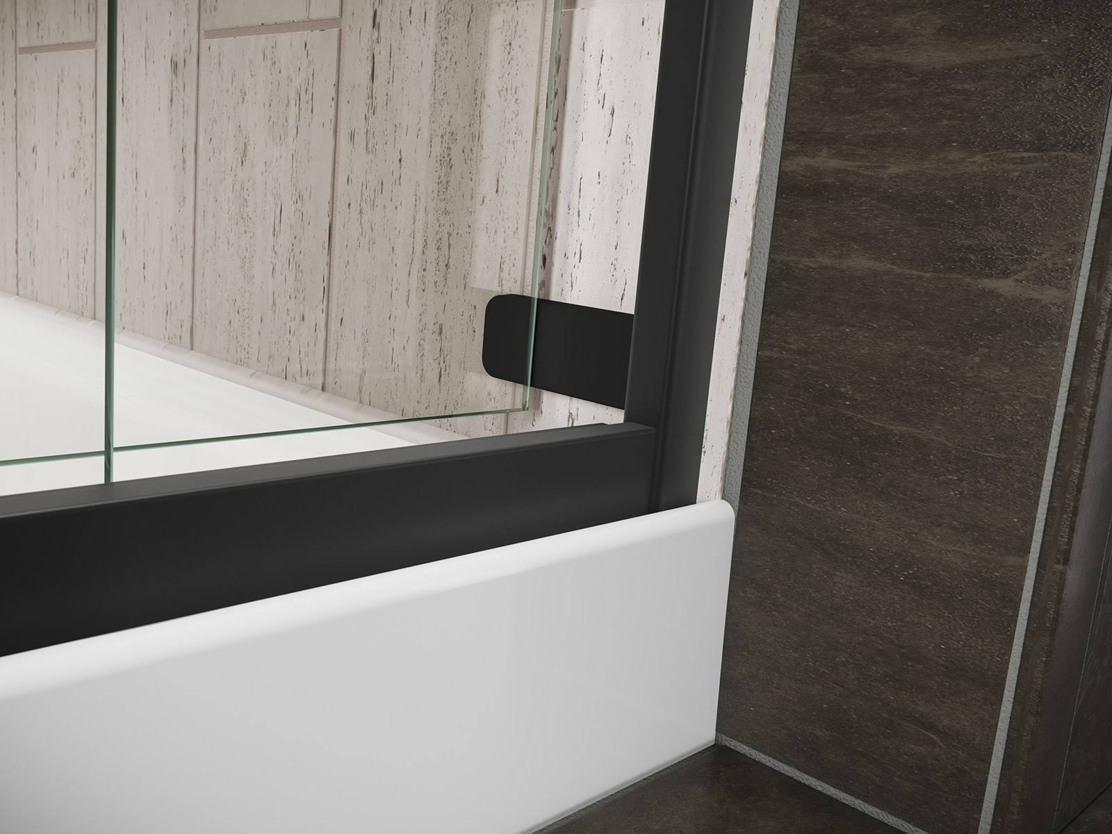Kohler K-706004-L Levity Sliding Bath Door, 62" H x 56-5/8- 59-5/8" W, with 1/4" Thick Crystal Clear Glass- Matte Black