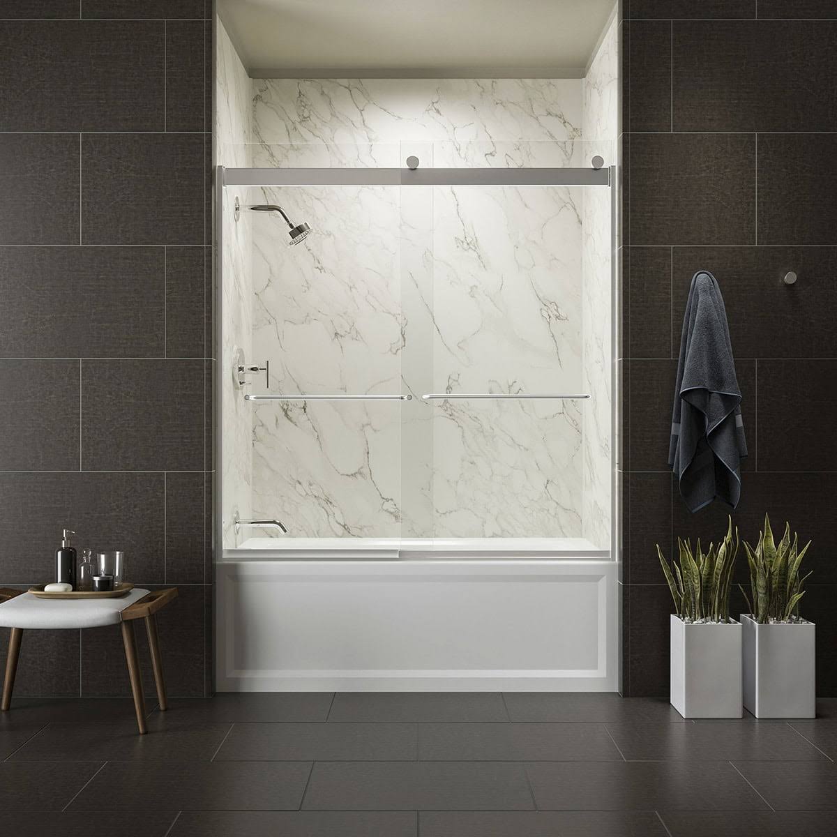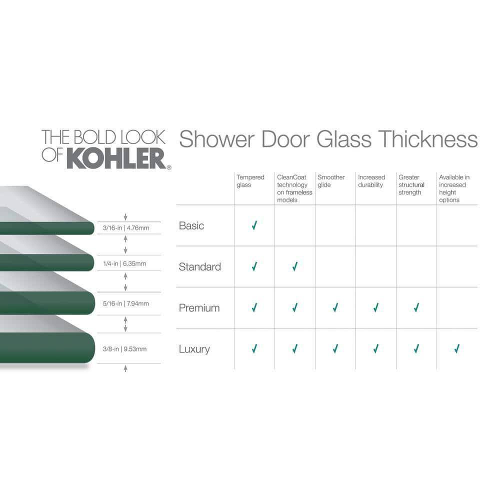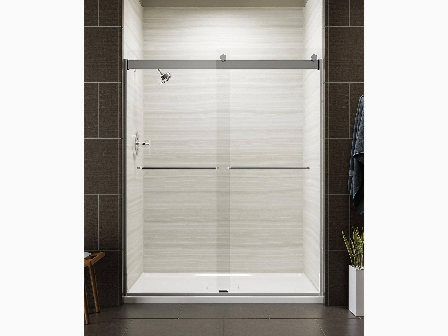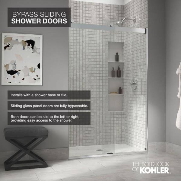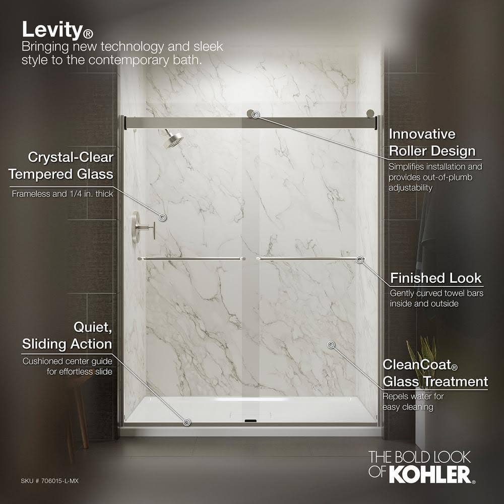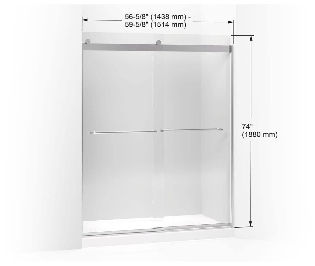 Kohler K-706015-L-SH Bright Silver Levity 74" H Sliding Shower Door with 1/4"- Thick Glass