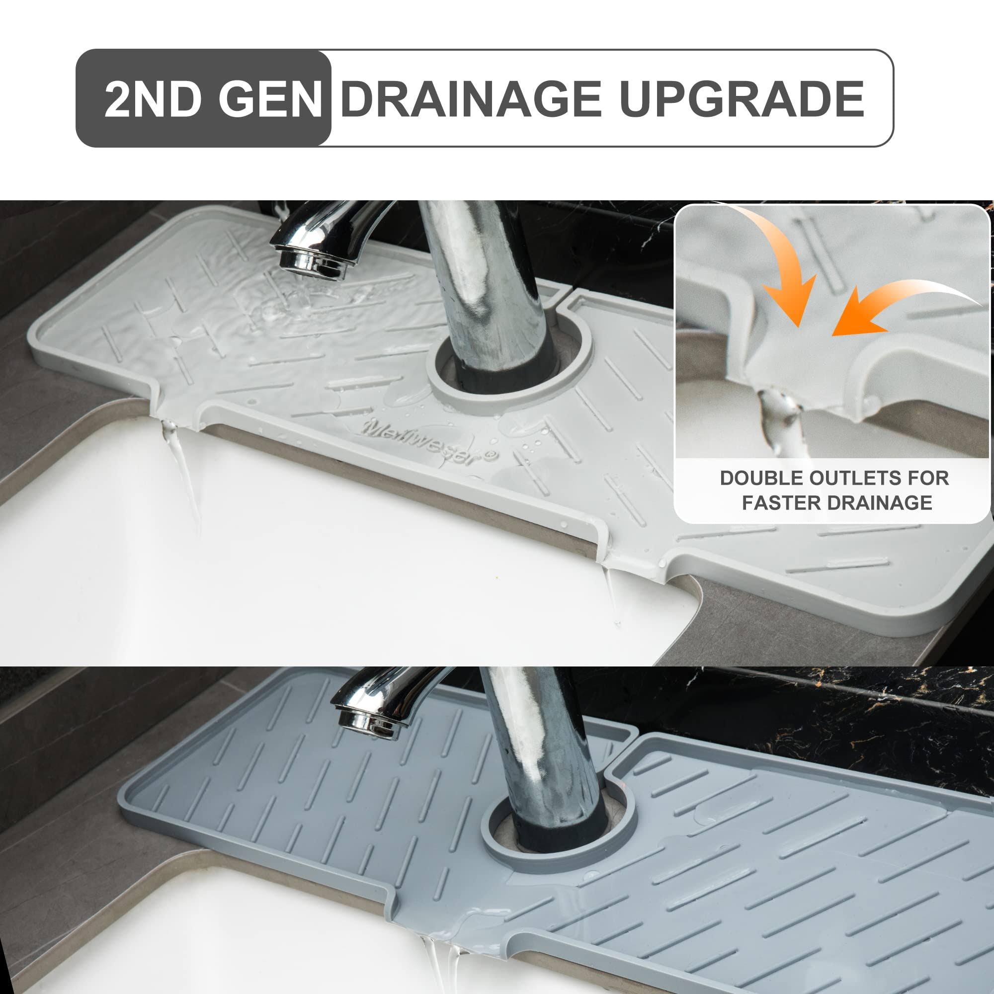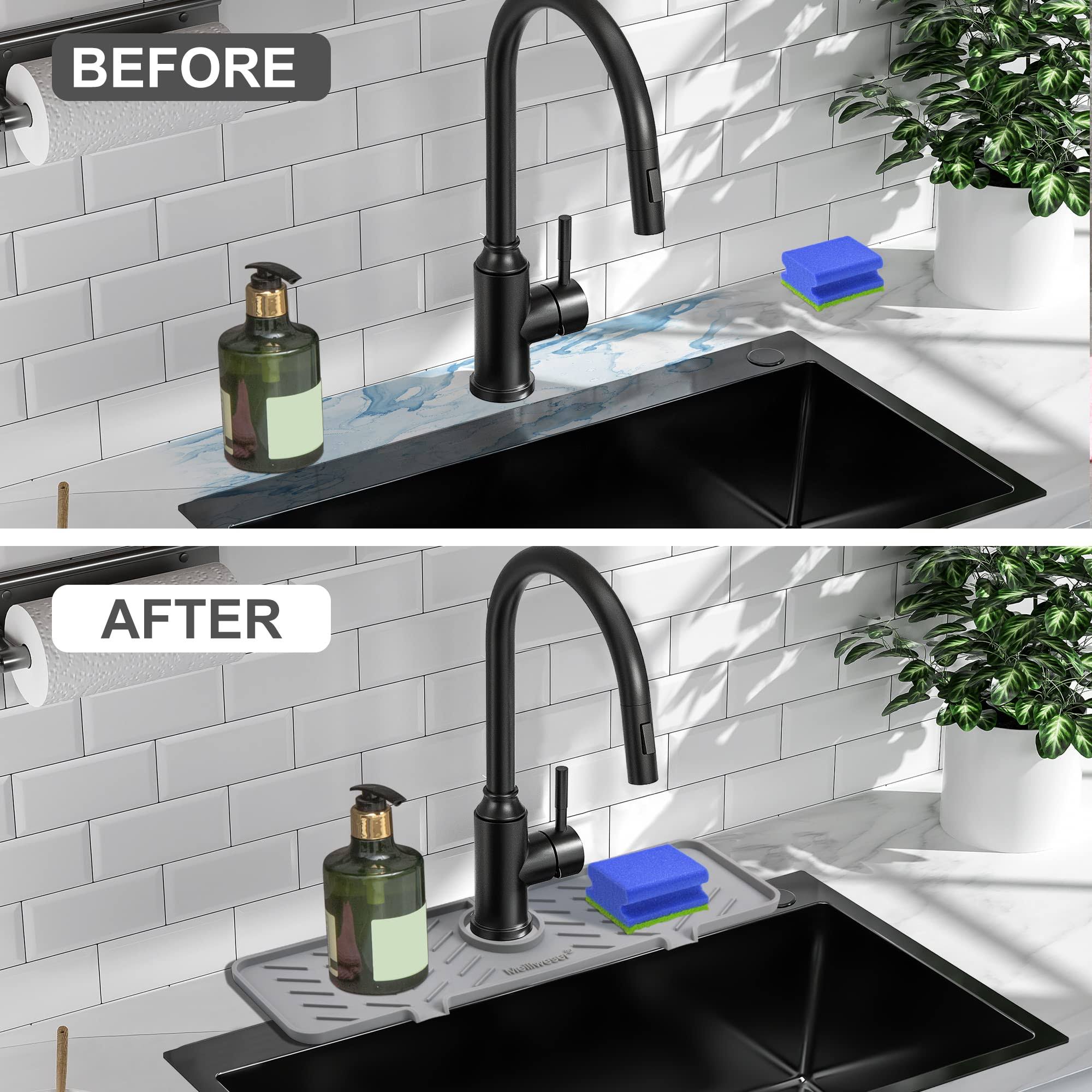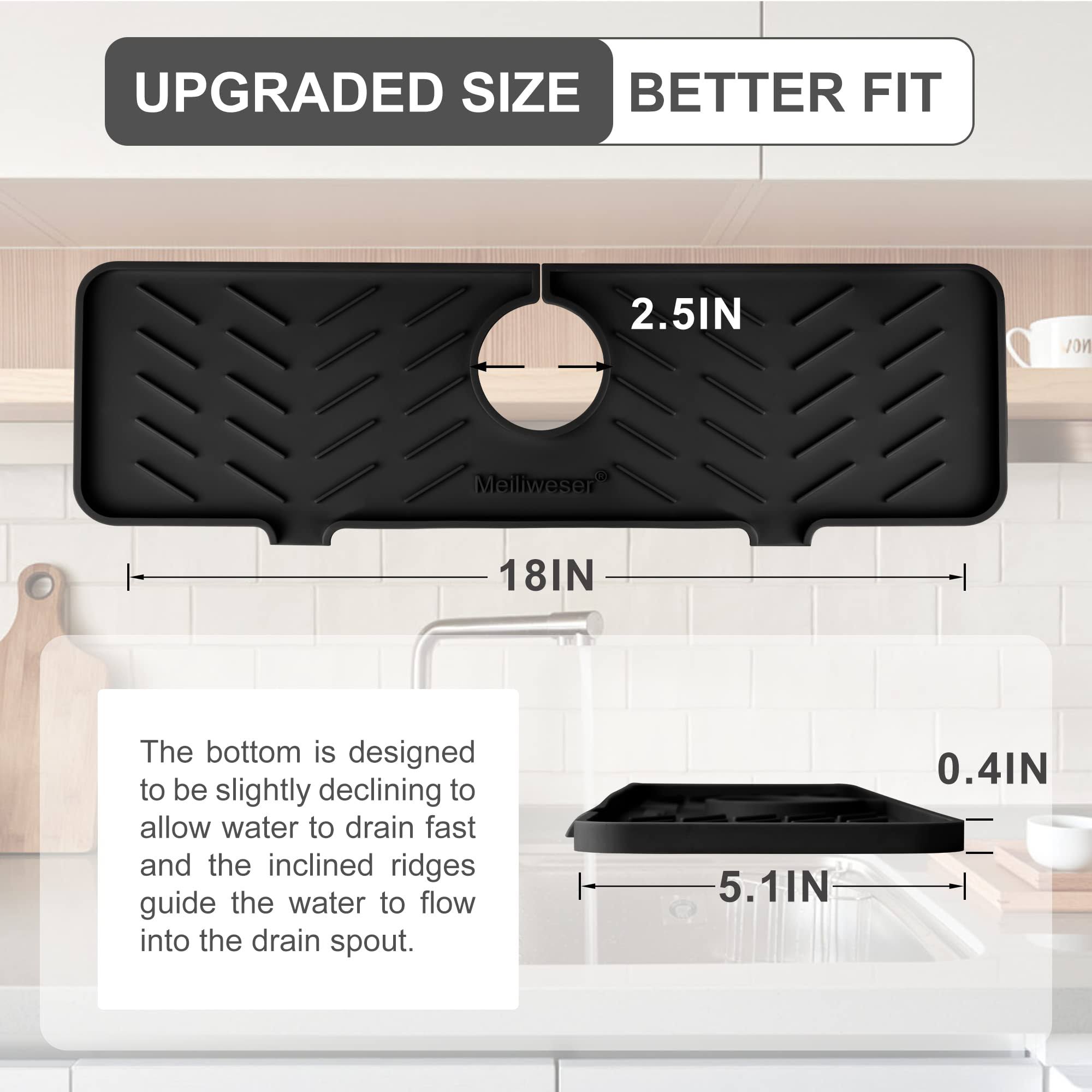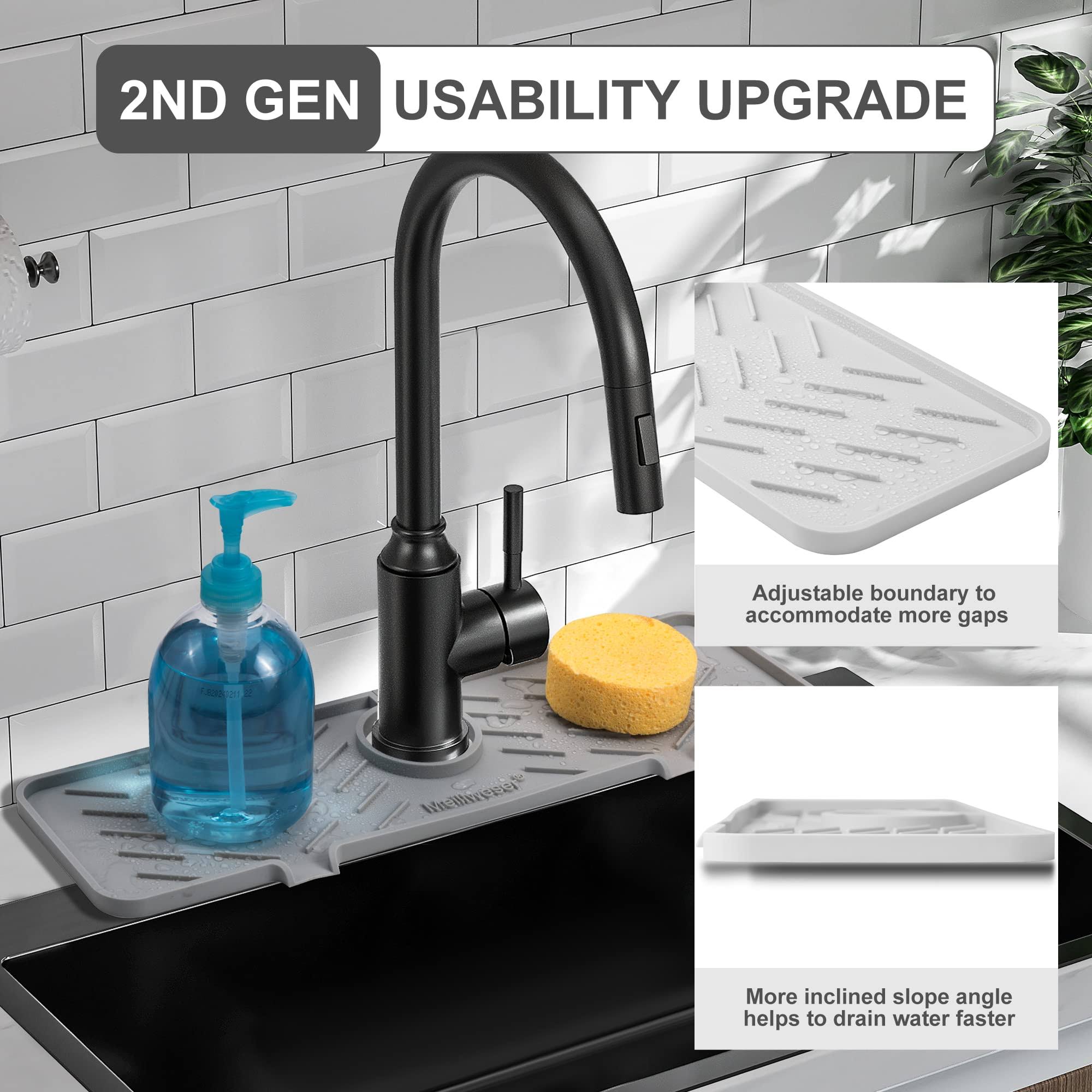 Meiliweser Silicone Faucet Splash Guard Gen 2- Outlet & Slope Upgraded Faucet Water Catcher Mat- 18" x 5.1"- Sink Sponge Hold