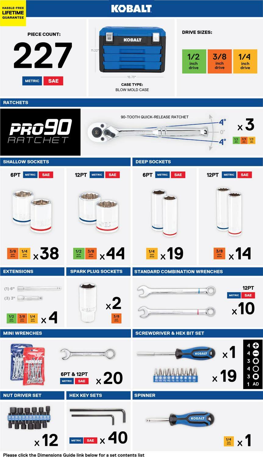 Kobalt 227-Piece Standard (SAE) and Metric Combination Polished Chrome Mechanics Tool Set