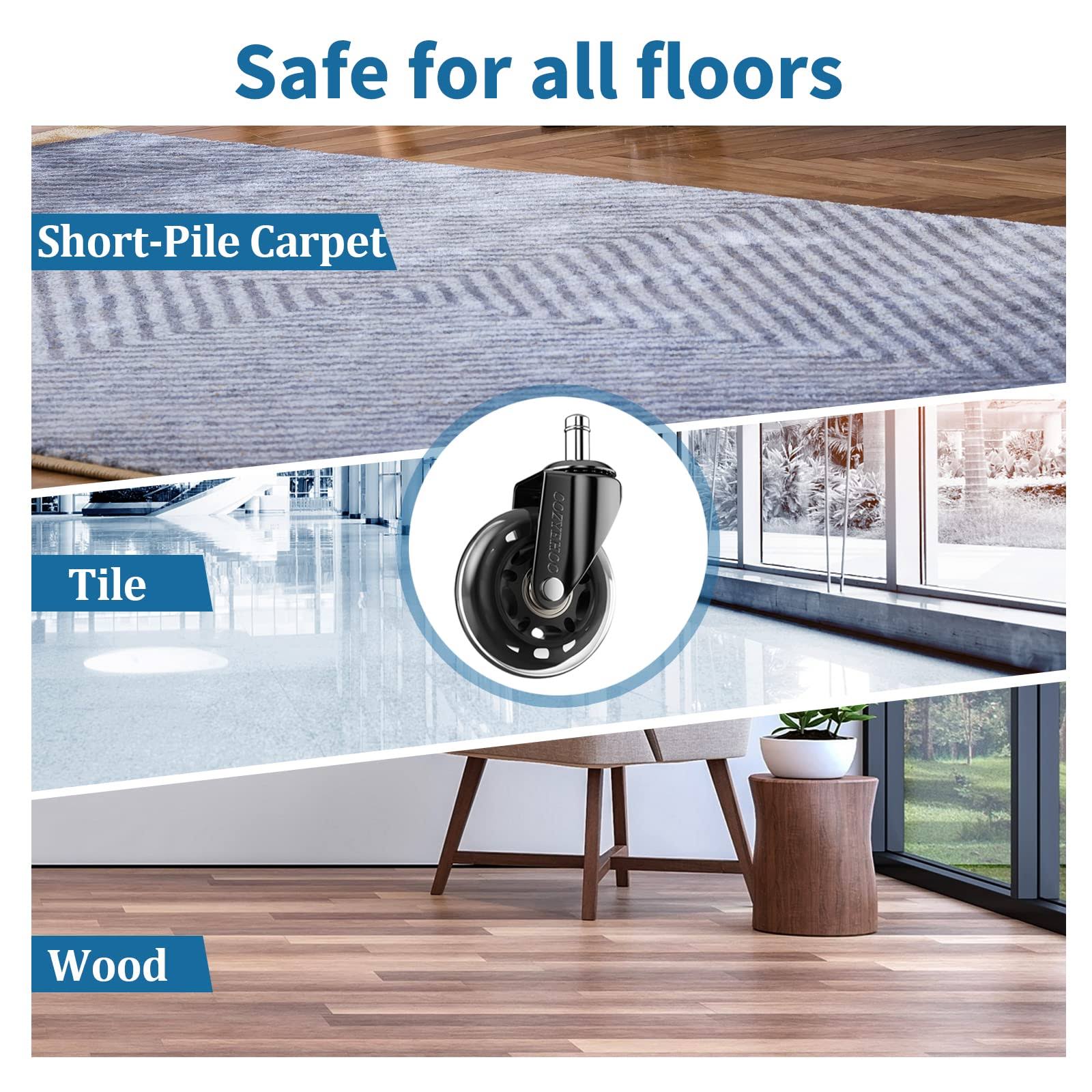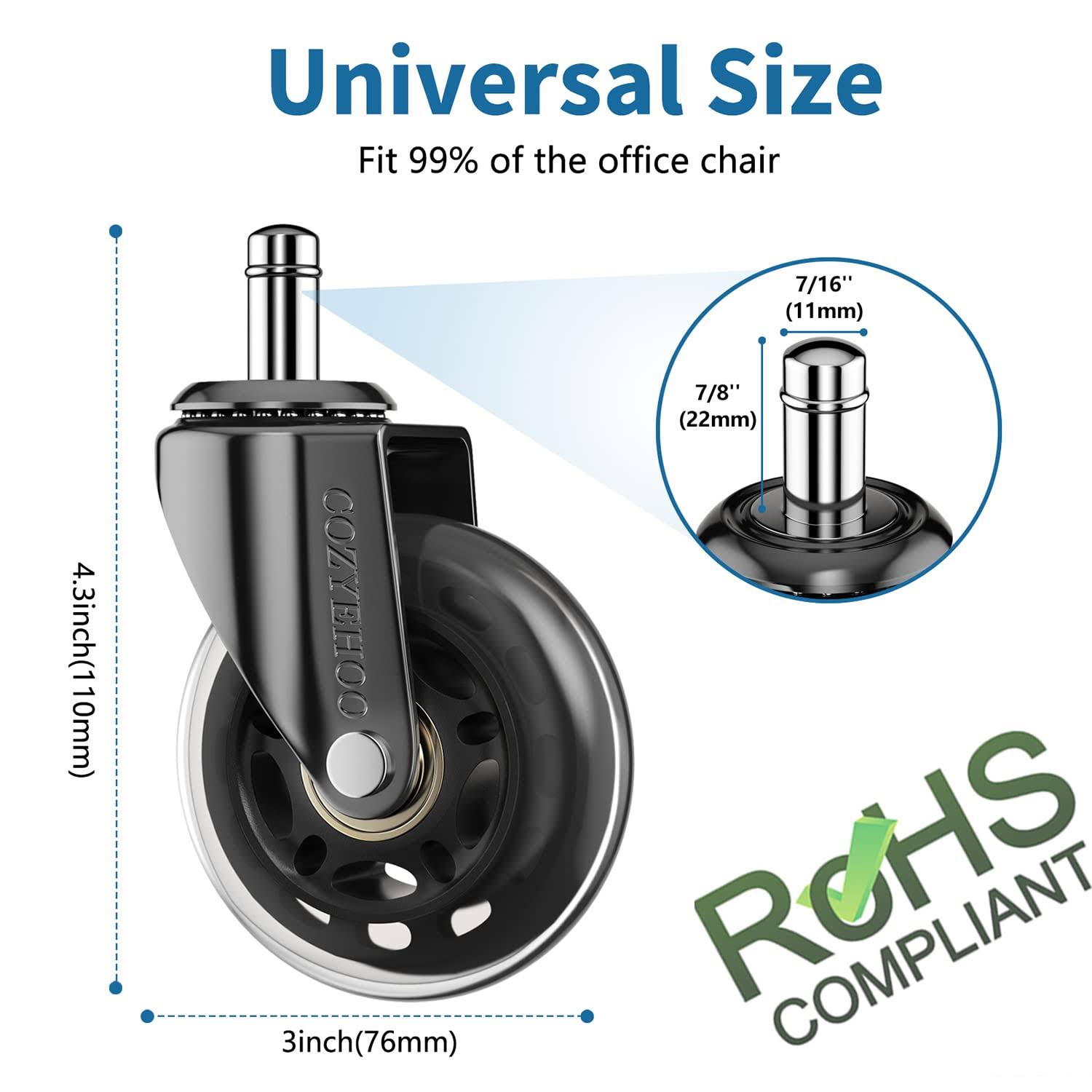 COZYEHOO Office Chair Wheels, Heavy-Duty Caster Wheels 3 inch, Replacement Wheels for Office Chair, Rubber Casters for Wood Floors/Carpet, Safe Quiet