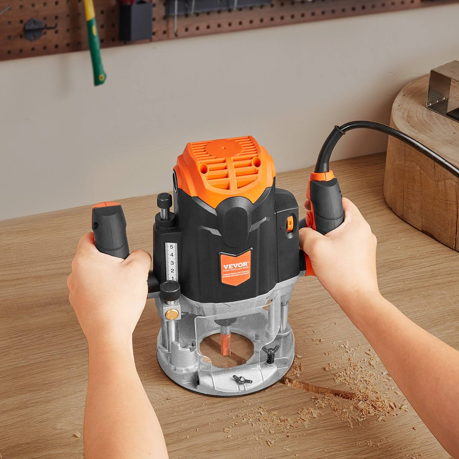 VEVOR Plunge Router 3-1/4 HP 120V 12000-23000 RPM Variable Speed Electronic Plunge Base Router Plunge Woodworking Router Kit with Carry Case