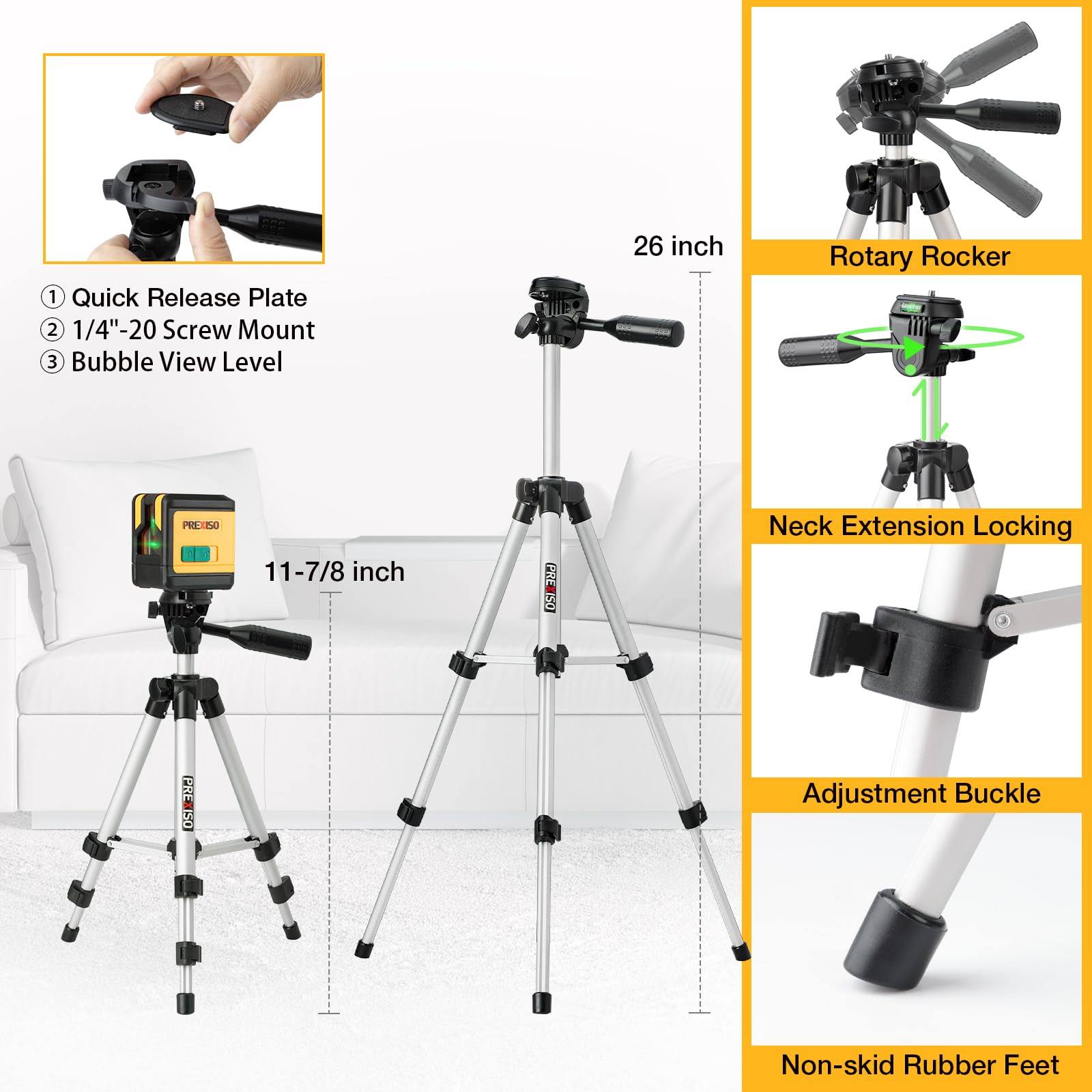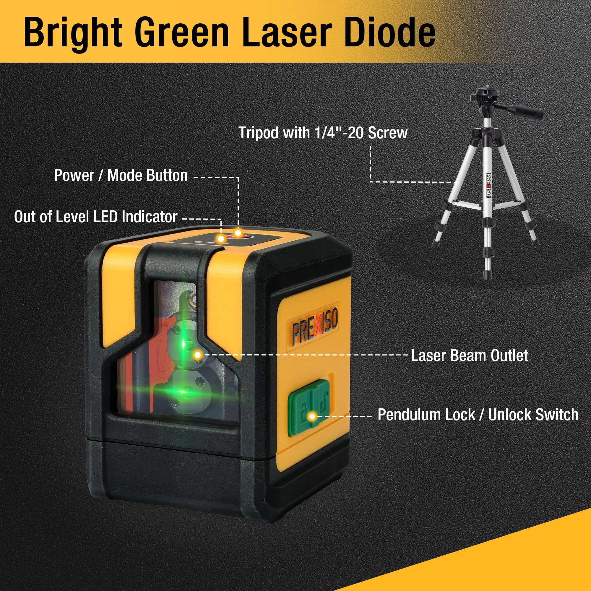 PREXISO Laser Level with Tripod 100ft Dual Modules Self Leveling Cross Line Laser Level Green Line Leveler Tool for Floor Tile Home Renovation Constru