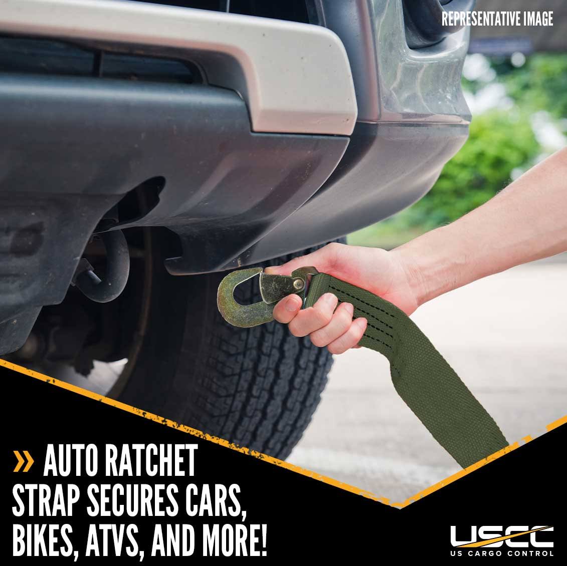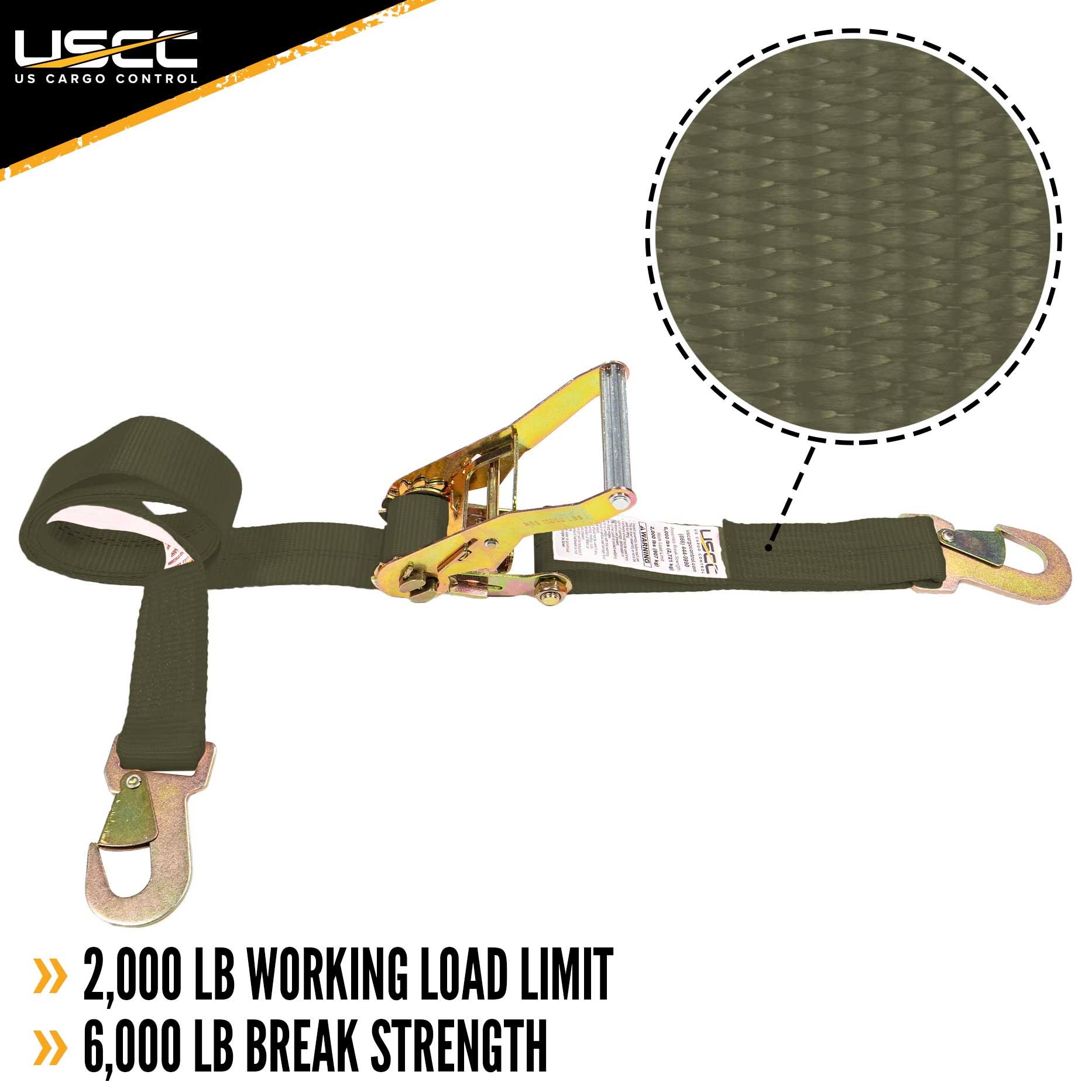 US Cargo Control 5108FSH-OD 2" x 8' Olive Car Tie Down Strap w/ Flat S