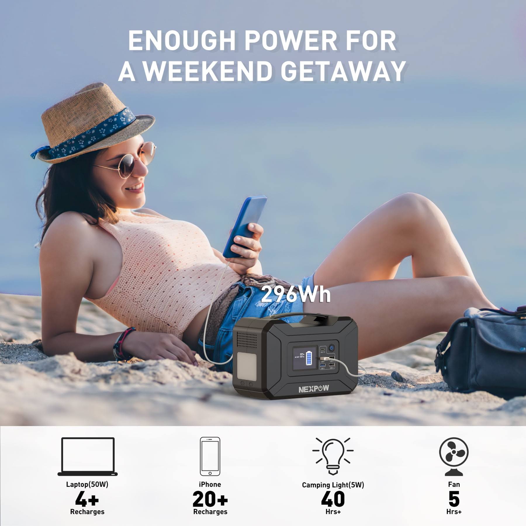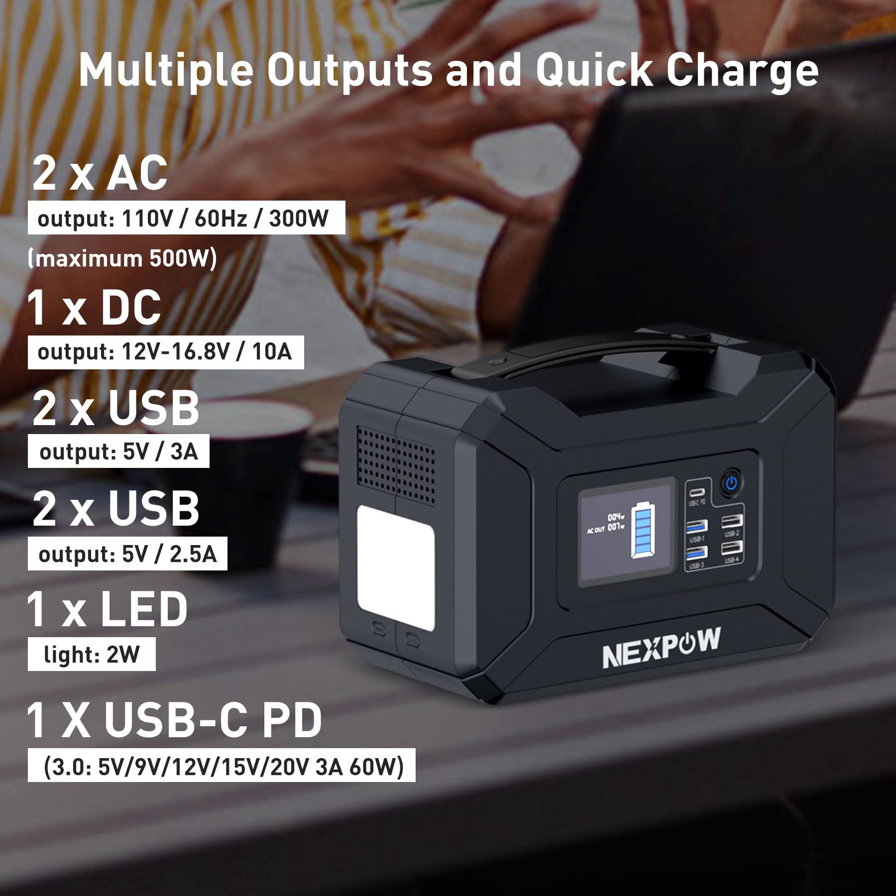 Nexpow 300W Portable Power Station, 80000mAh Solar Generator, Portable Generator for Camping Travel Emergency, Black