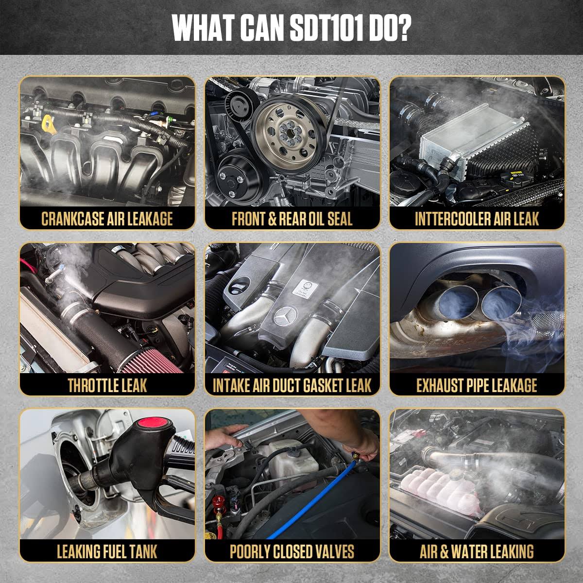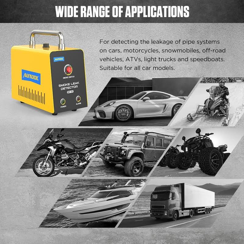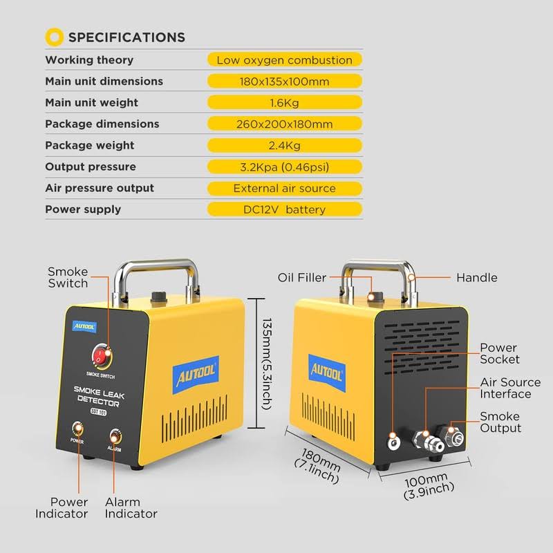 AUTOOL Automotive Smoke Machine Leak Detector,Evap Vacuum Smoke Diagnostic Tester,Pipeline Fuel Leakage Detector Compatible with 12V Cars, Trucks,
