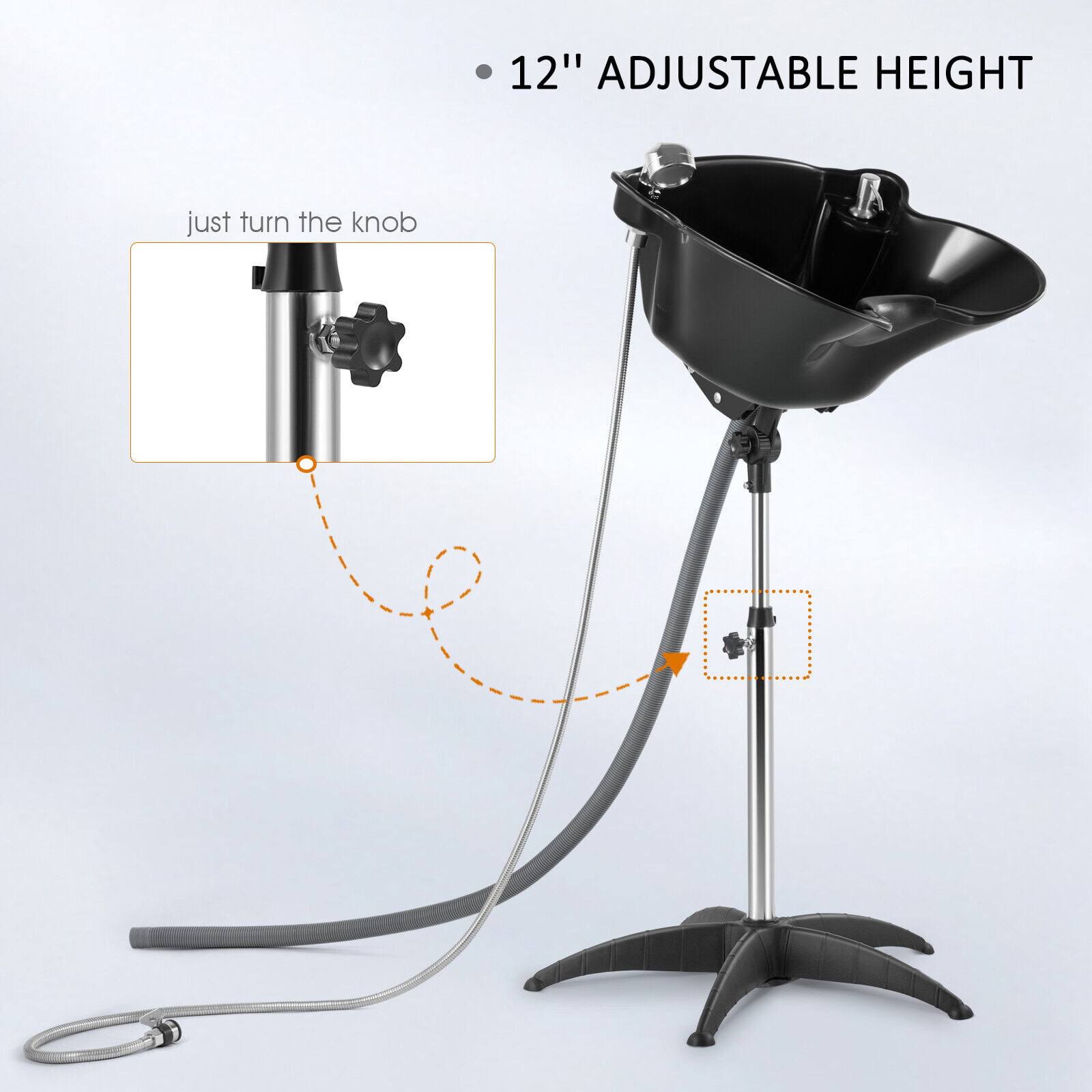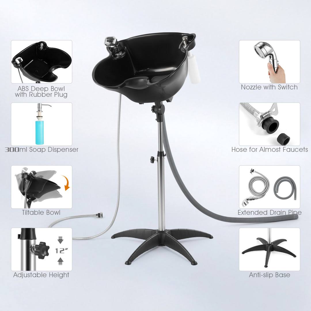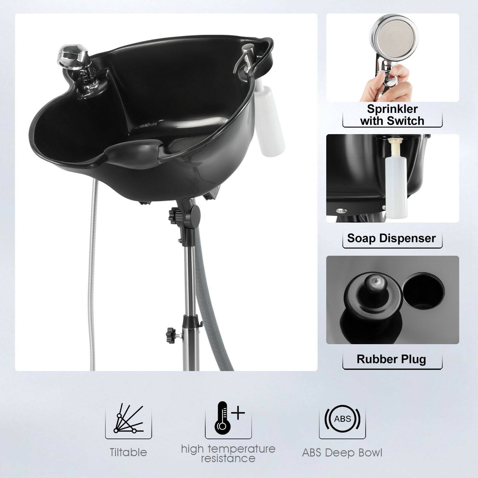 Artist Hand Black Shampoo Bowl Portable Salon Sink Barber Hair Washing Basin Adjustable Height with Drain, Sprinkler, Switch, Size: 19