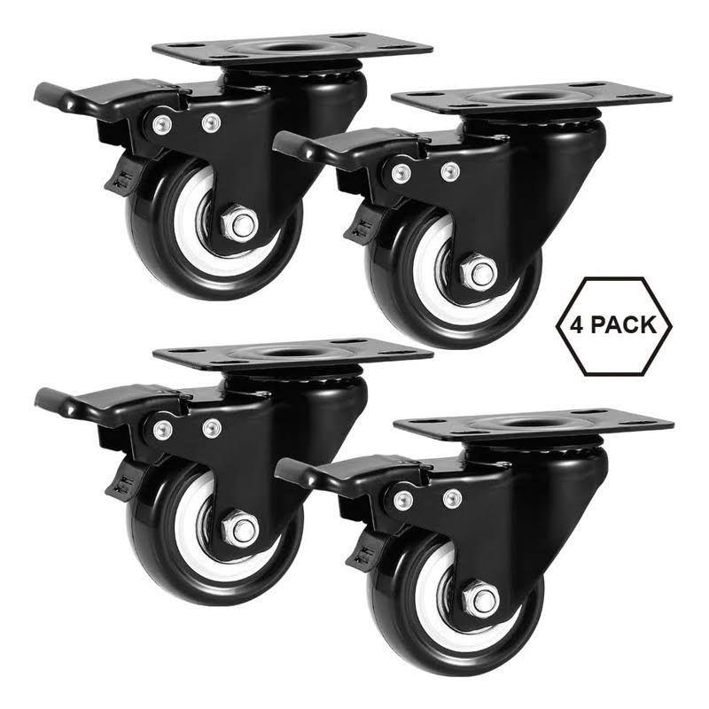 ASHGOOB 2" Caster Wheels Set of 4, Heavy Duty Casters with BRAKE, No Noise Locking Casters with Polyurethane (PU) Wheels, Swivel Plate Castors Pack