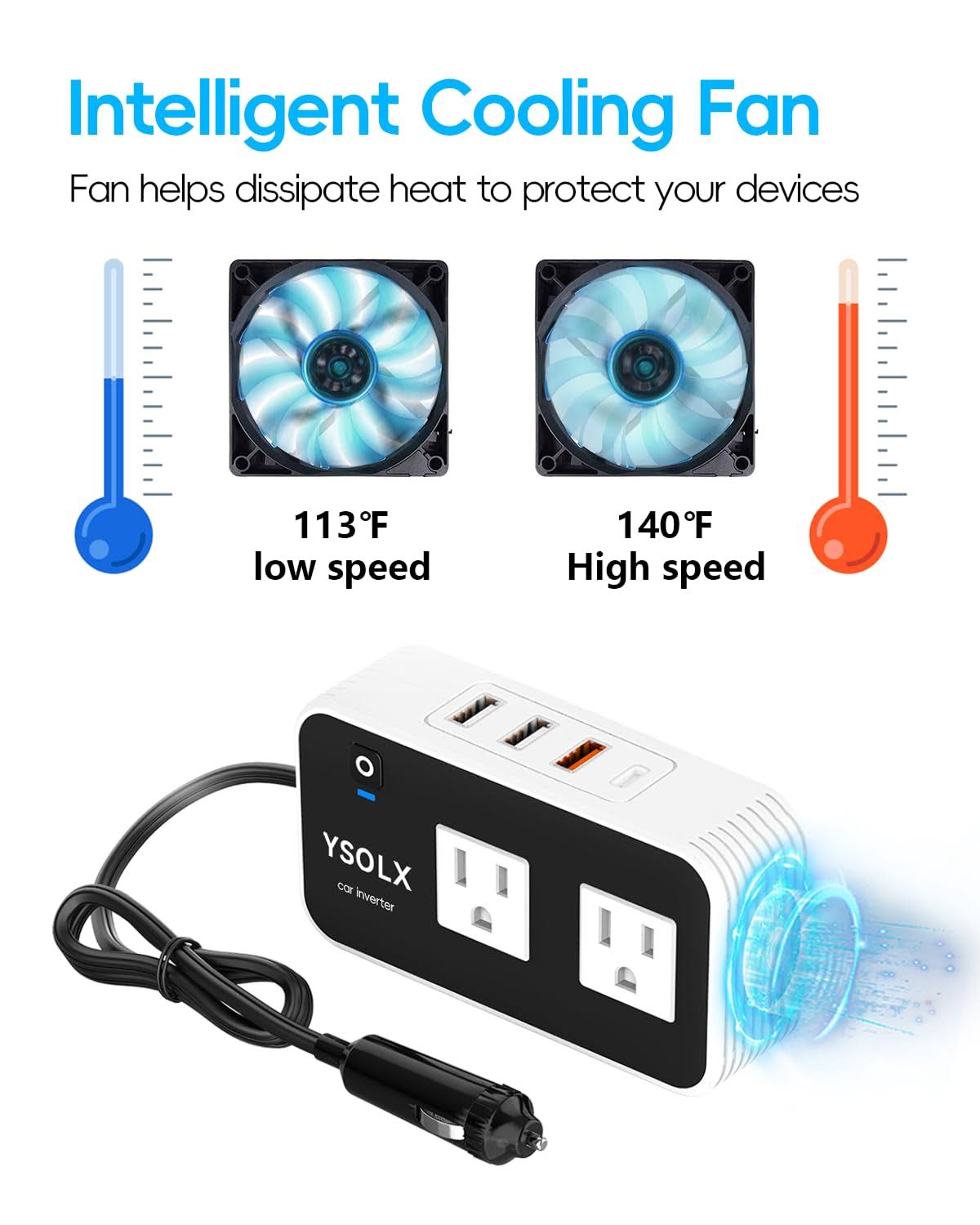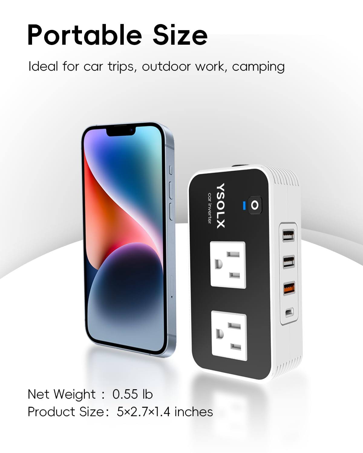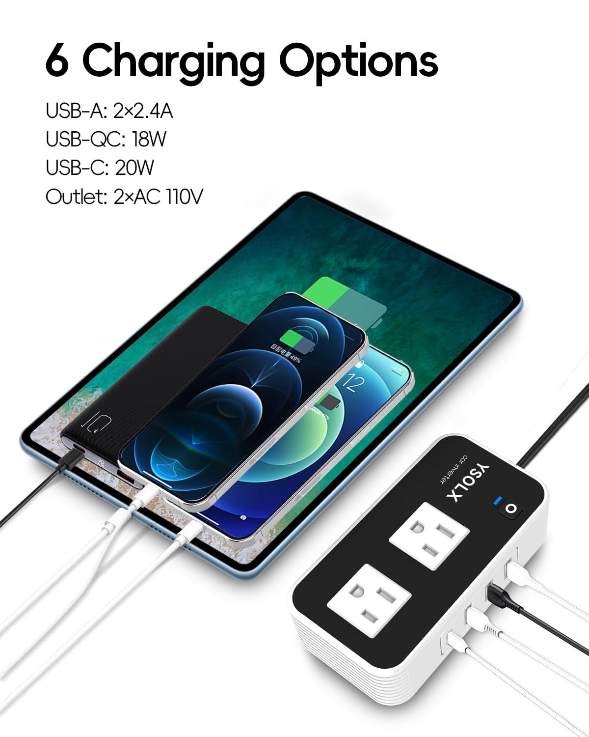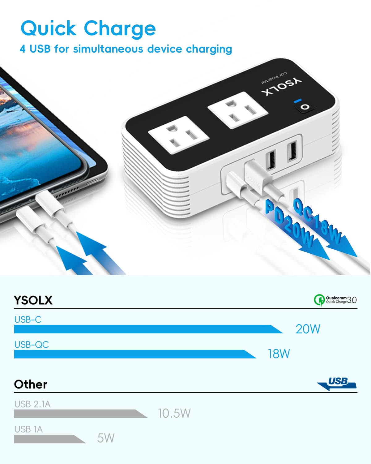 Ysolx 200W Car Power Inverter, DC 12V to 110V AC Converter, Fast Car Charger Adapter with 18W Quick Charge/ 20W USB-C/ 4.8A Dual