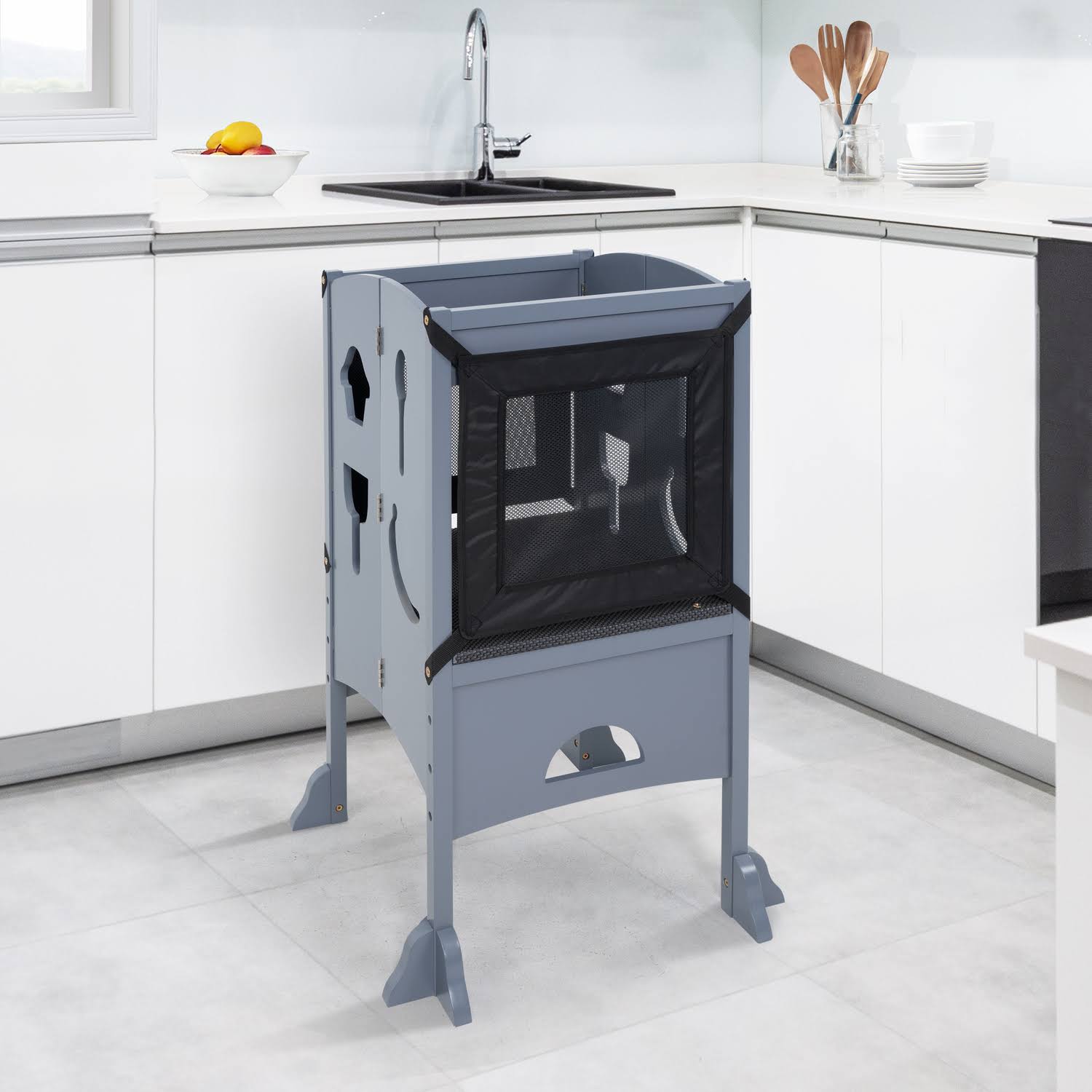 Naomi Home Kids I'm A Big Helper, Counter Stool for Kids Gray