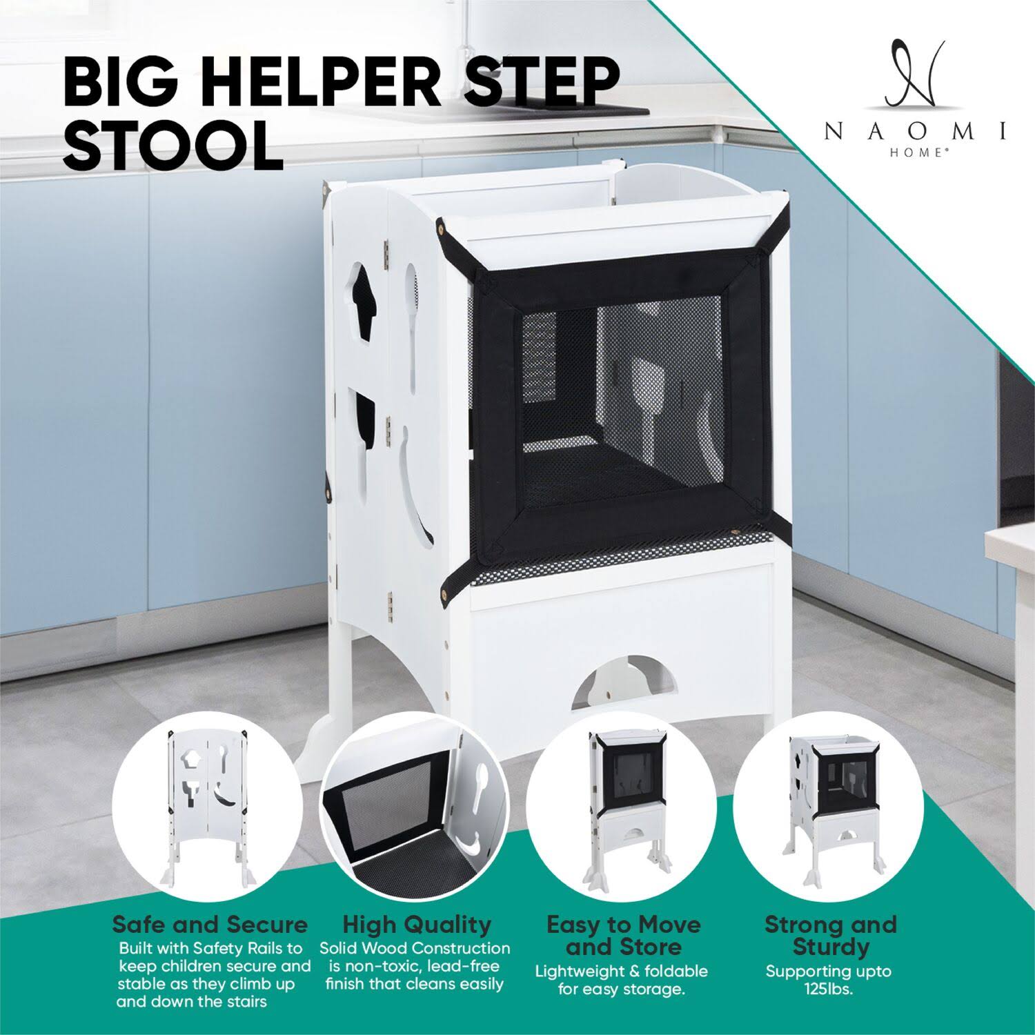 Naomi Home Kids I'm A Big Helper, Counter Stool for Kids Natural