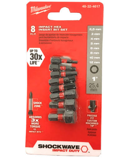 Milwaukee 48-32-4617 8 Piece 1" Impact Hex Insert Bit Set