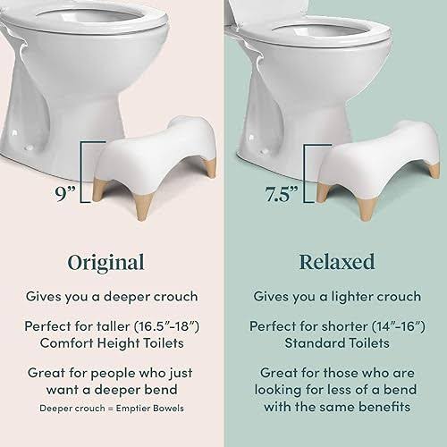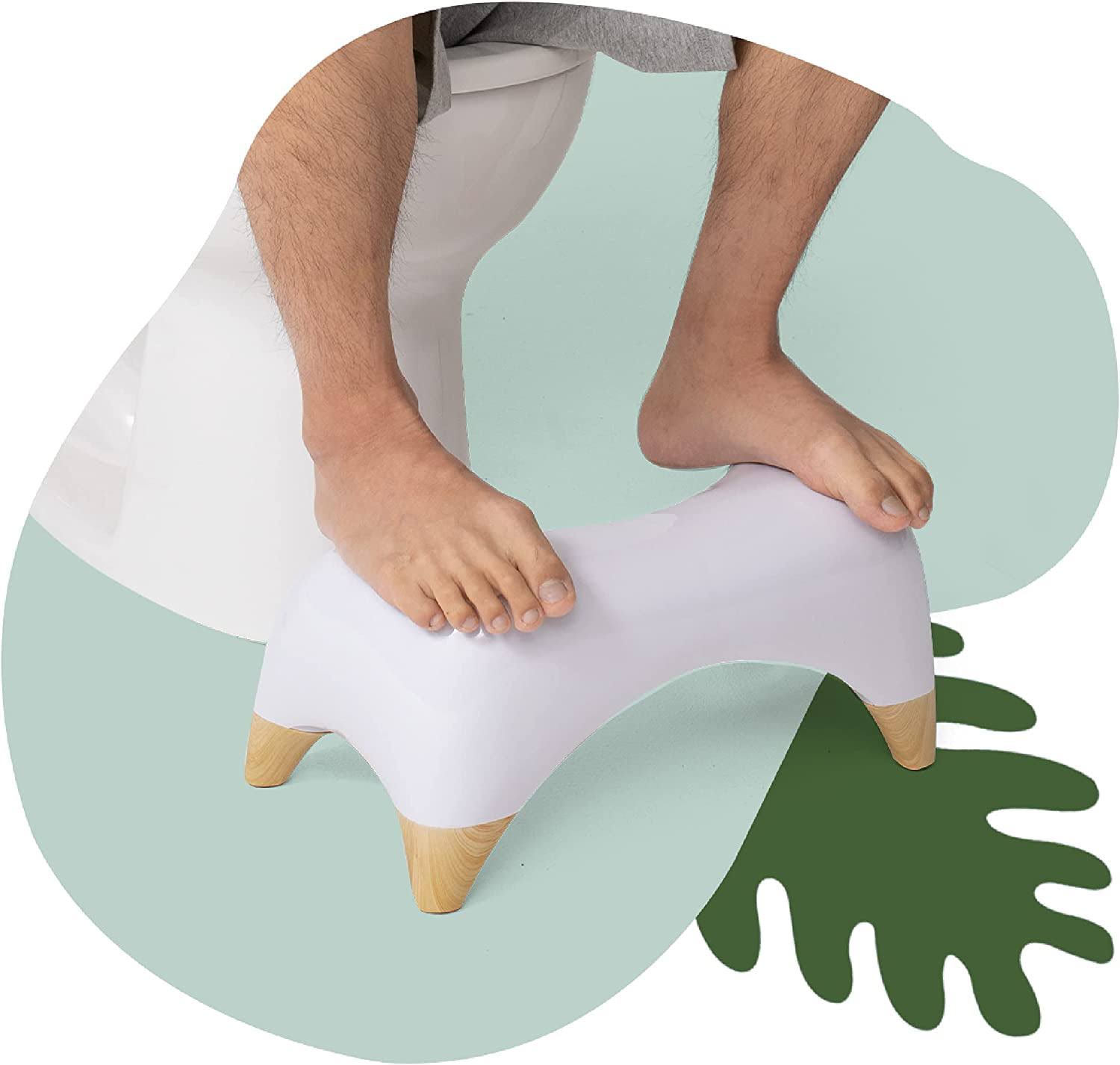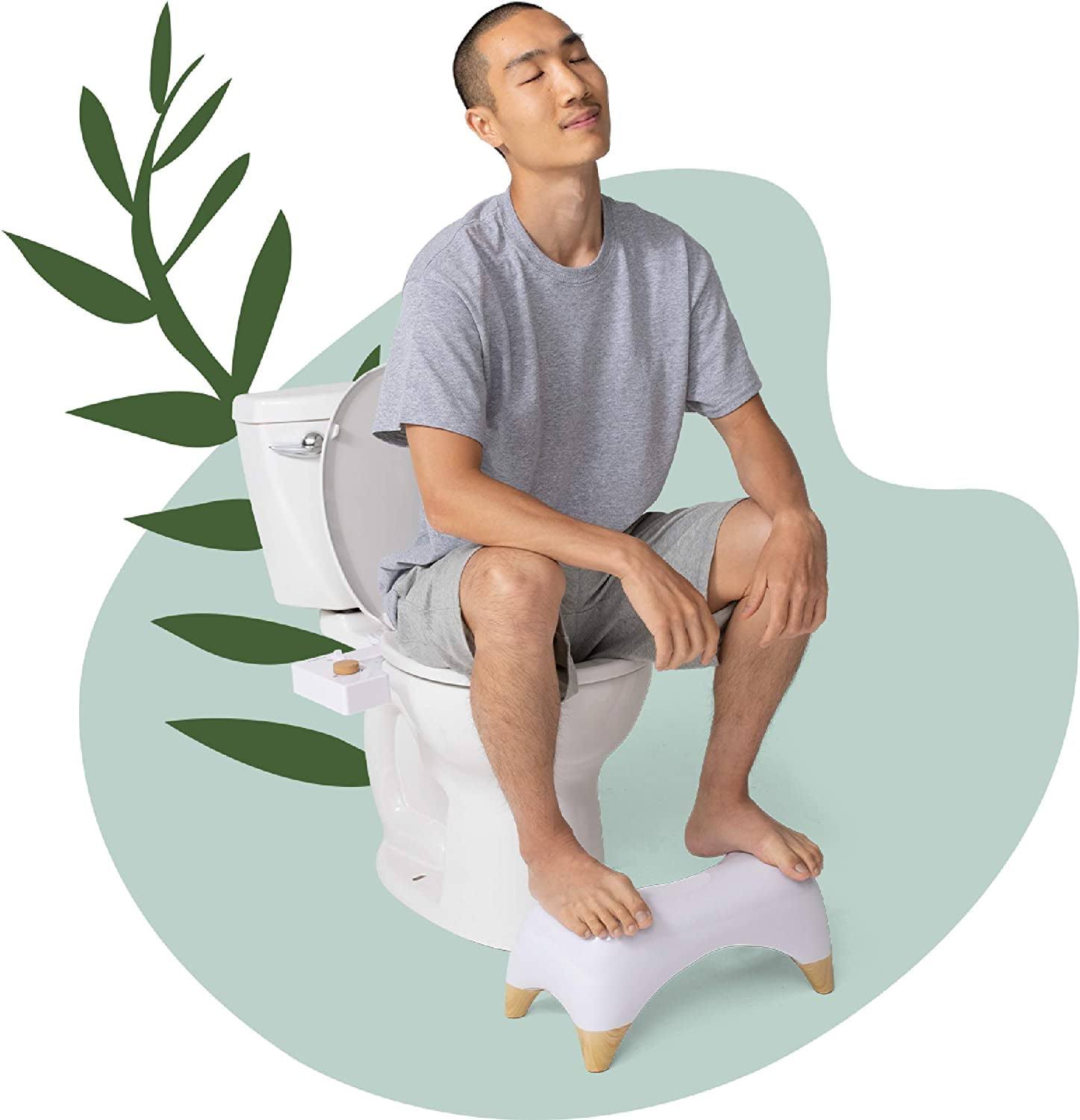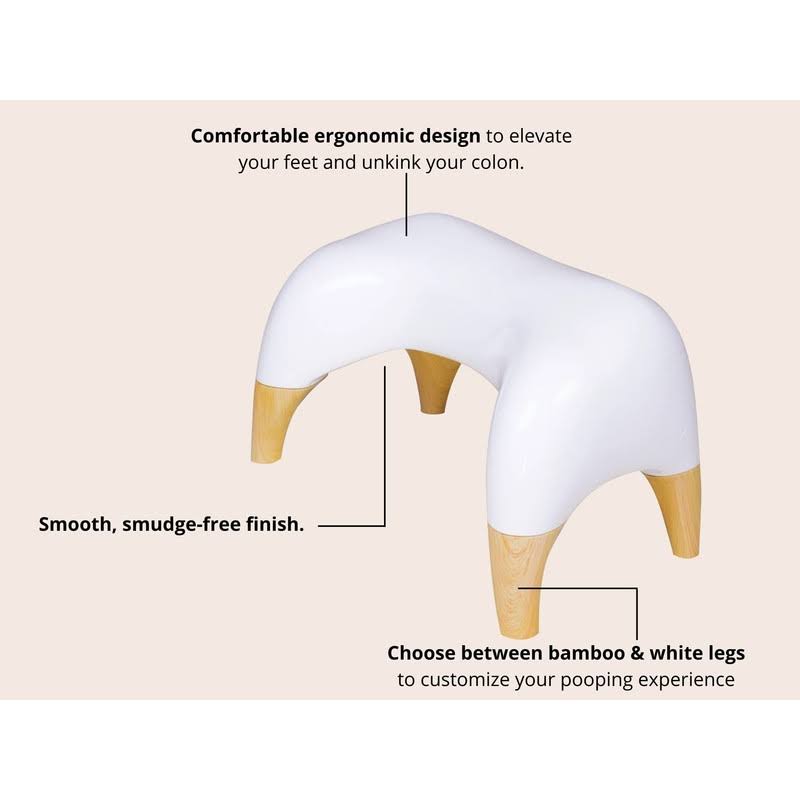 Tushy Ottoman Relaxed- Premium Toilet Stool for Bathroom- Modern Sleek Design- White/Bamboo, Short