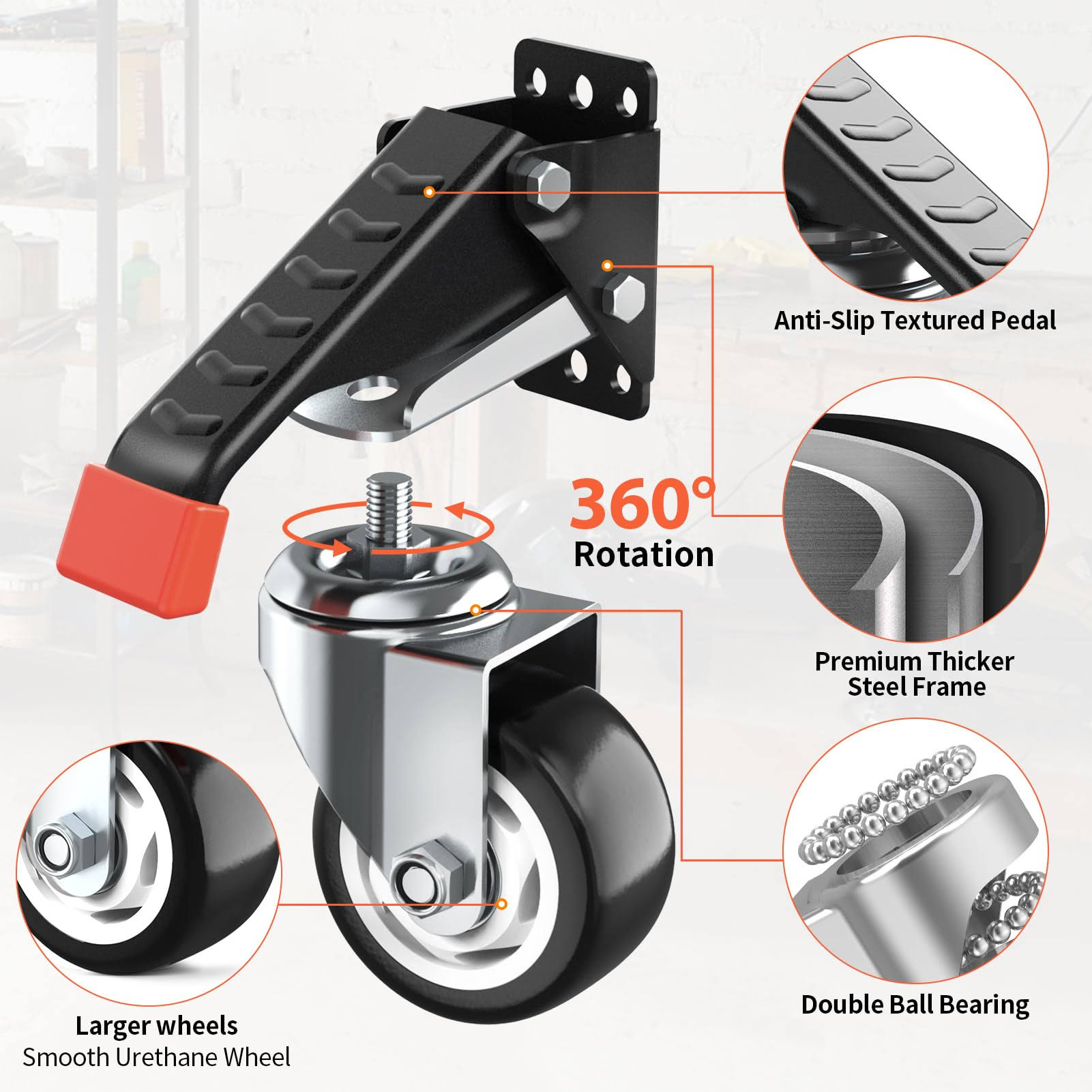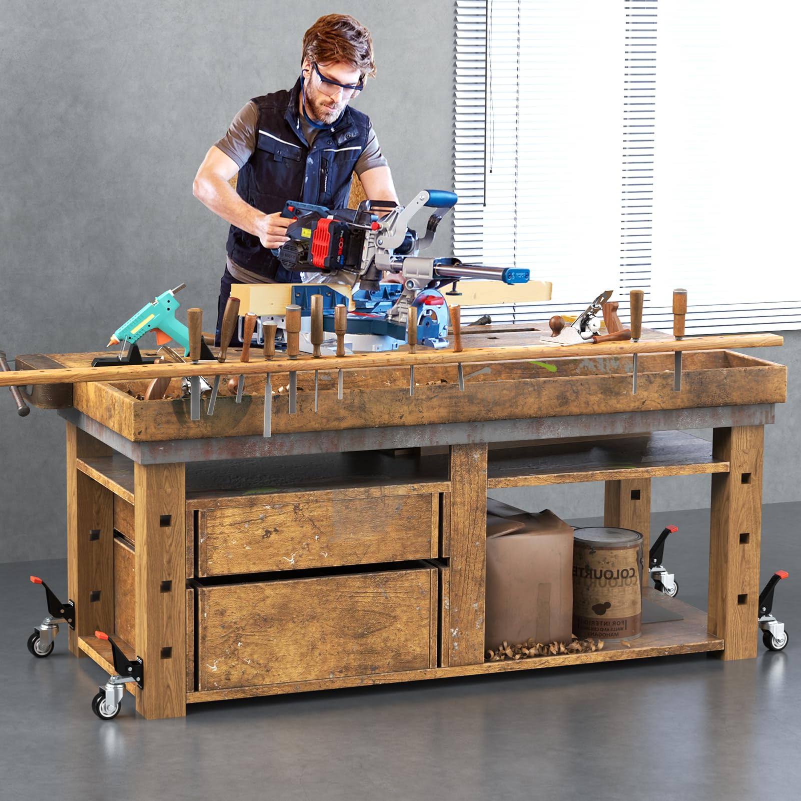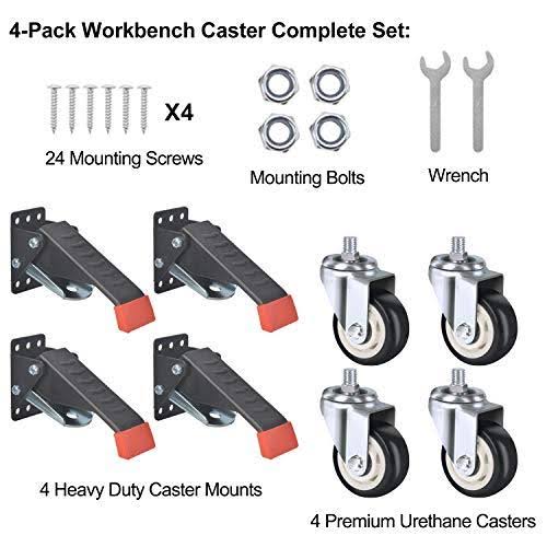 SPACEKEEPER Workbench Casters Kit 880 lbs- 3 inch Heavy Duty Retractable Caster