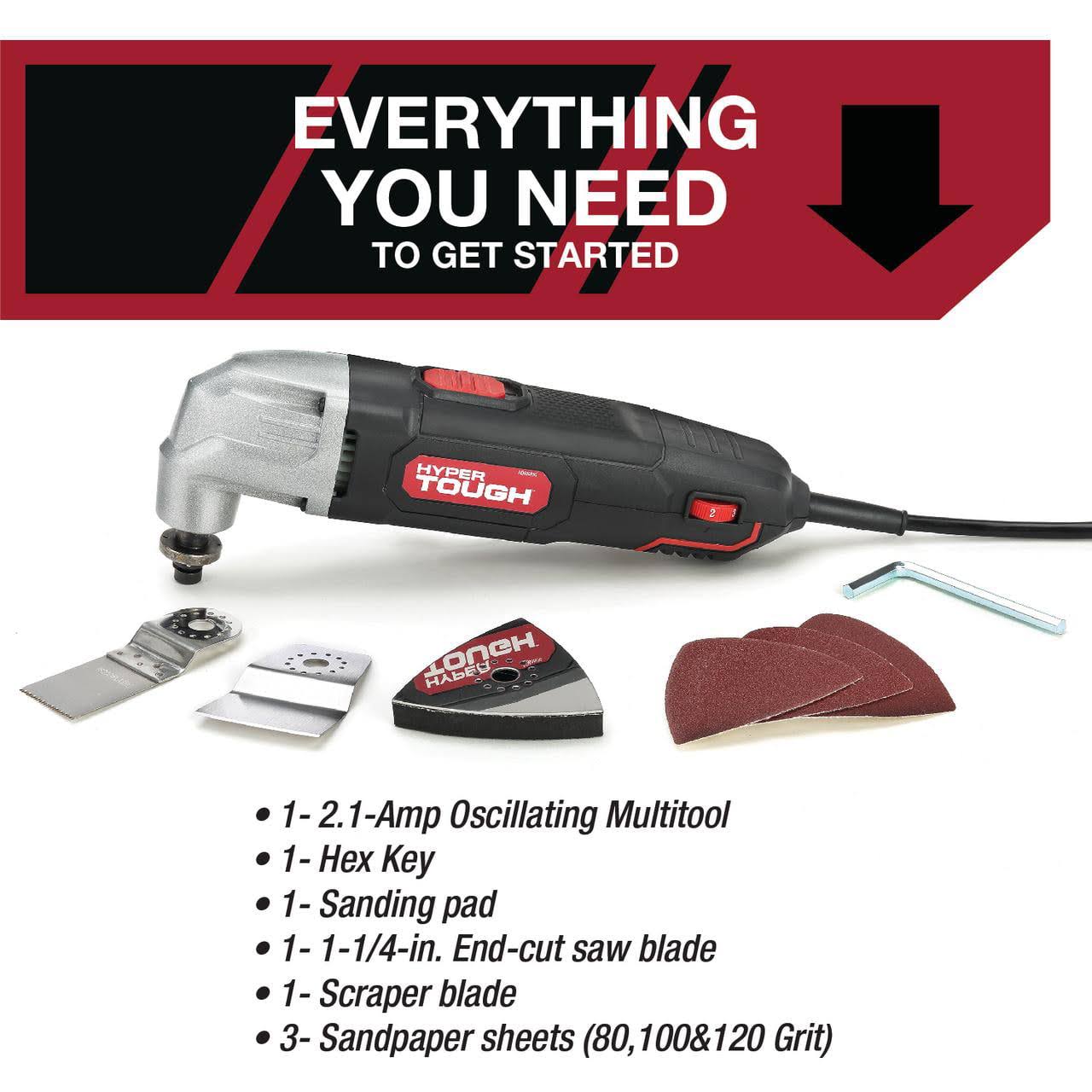 Hyper Tough 2.1 Amp Corded Oscillating Multi-function Tool, Variable Speed, with Hex Key, Sanding Pad, 1-1/4 inch Blade, Scraper Blade & 3