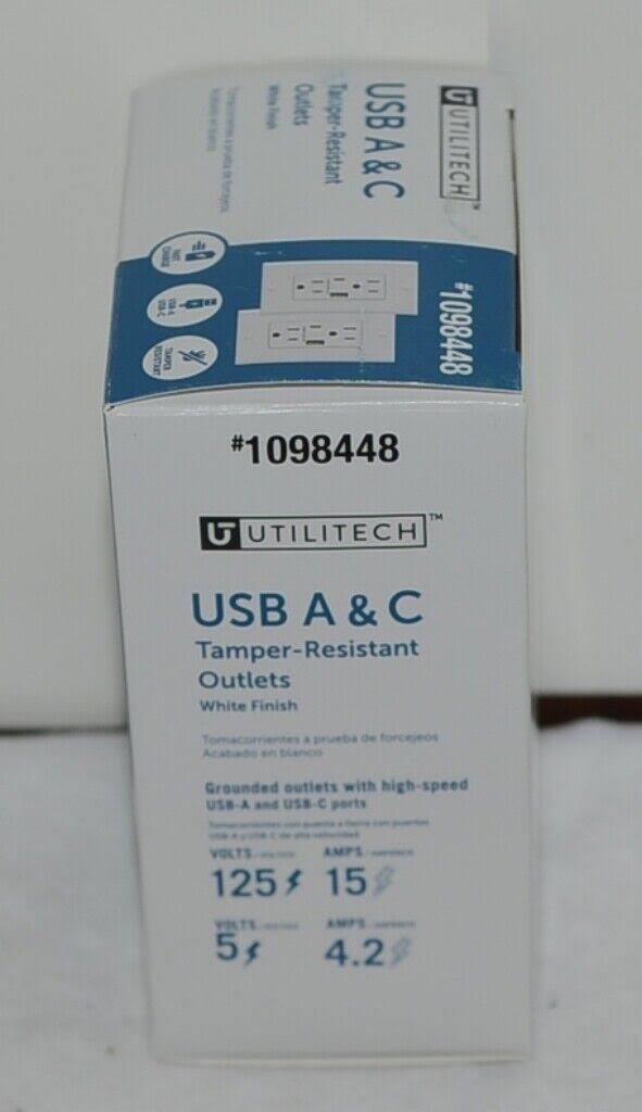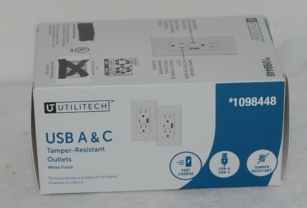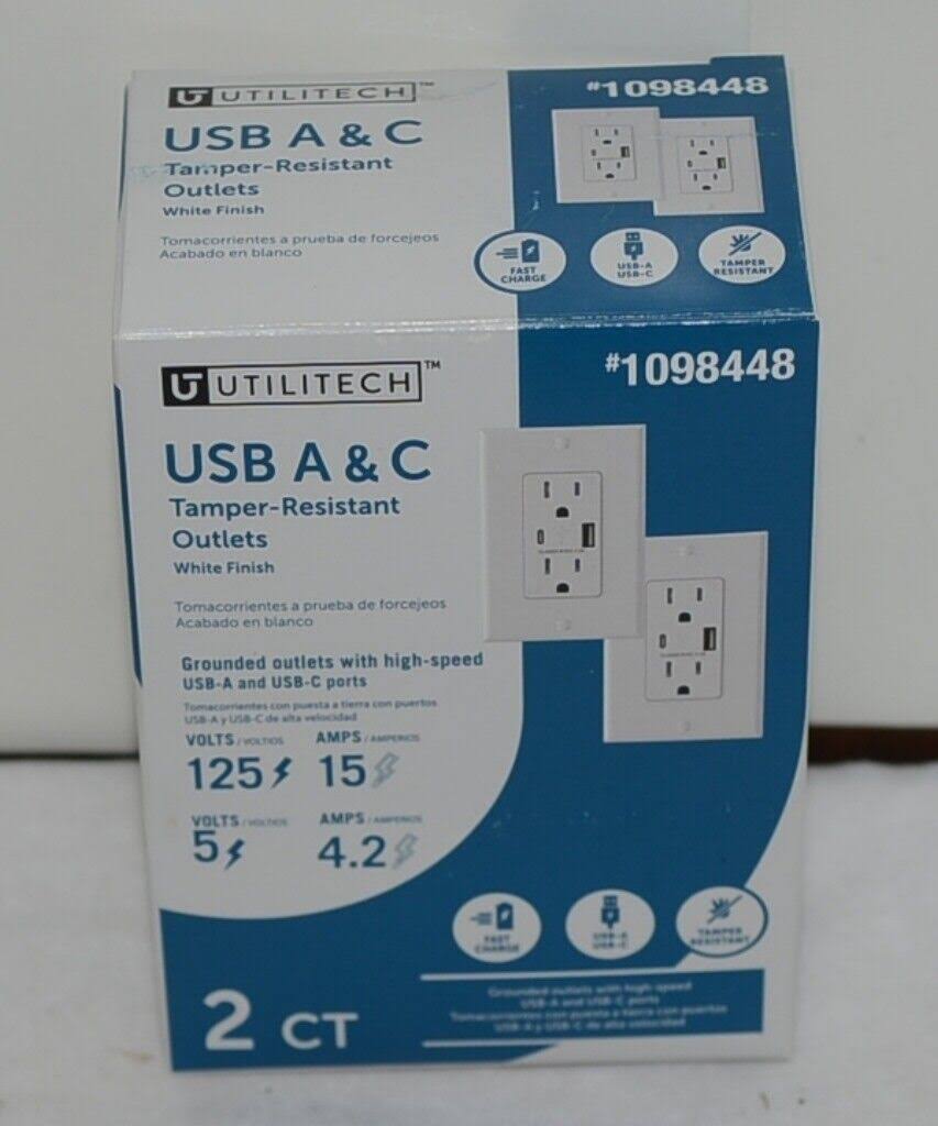 Utilitech 1098448 USB A C Tamper Resistant Outlets 2 Pack