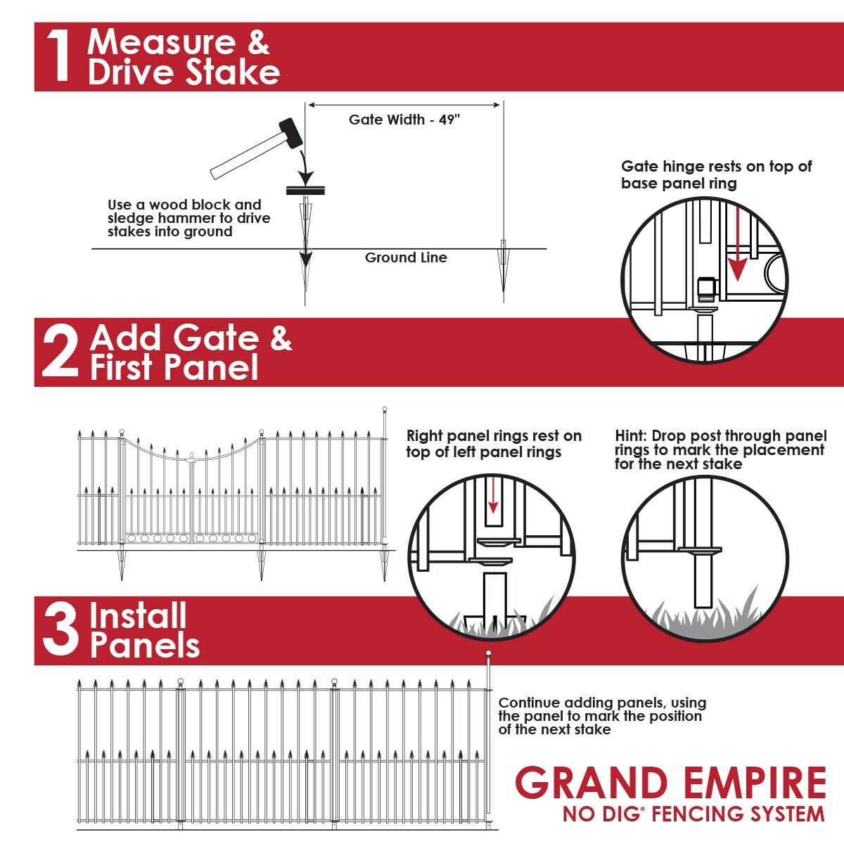 No Dig Grand Empire 3.37-ft H x 4.12-ft W Black Steel Pressed Point Decorative Fence Panel | 504018