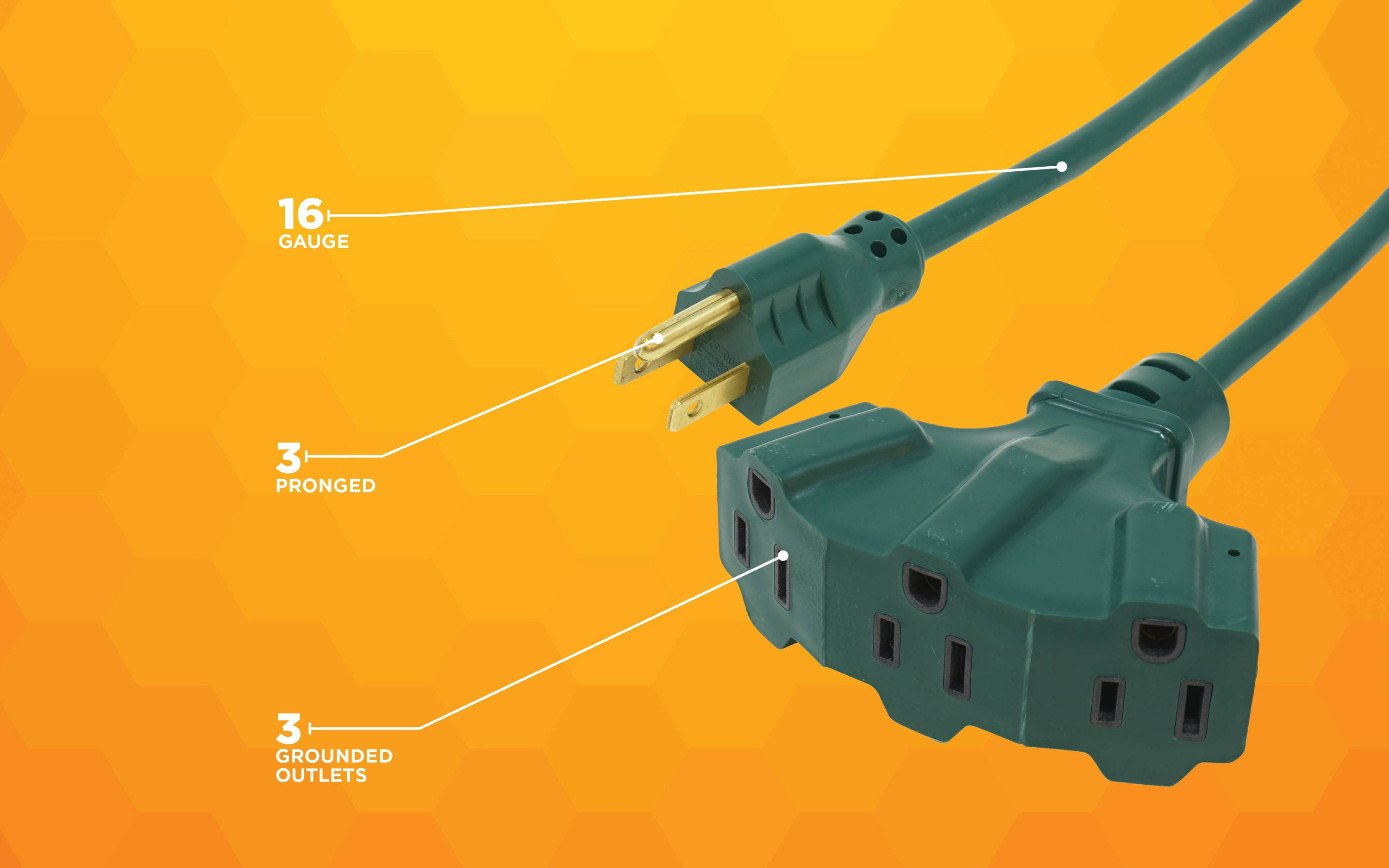 Woods 984413 25 Foot Outdoor Extension Cord with 3 Outlet Power Block Green