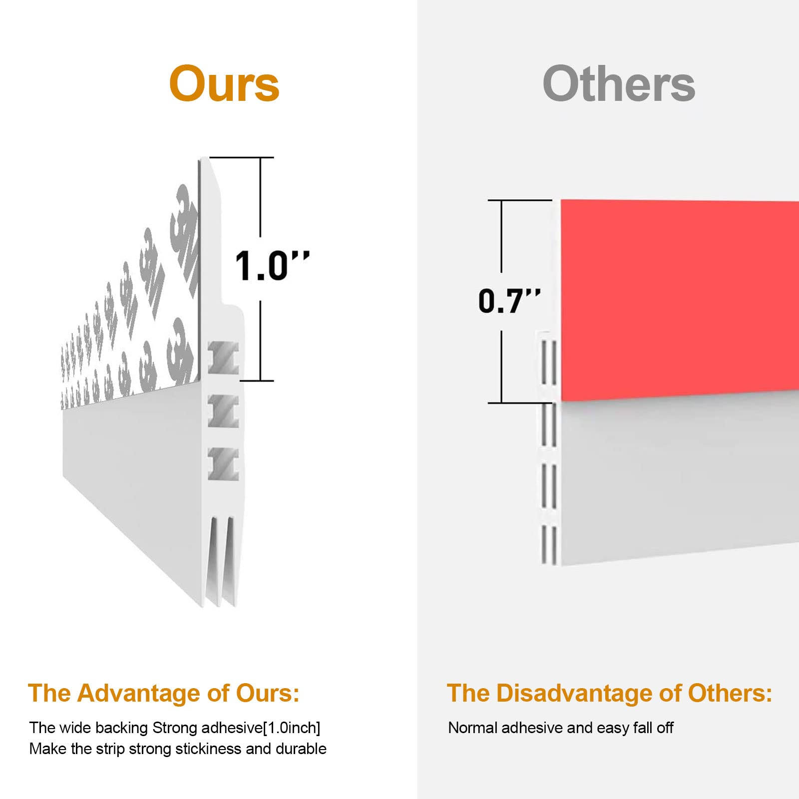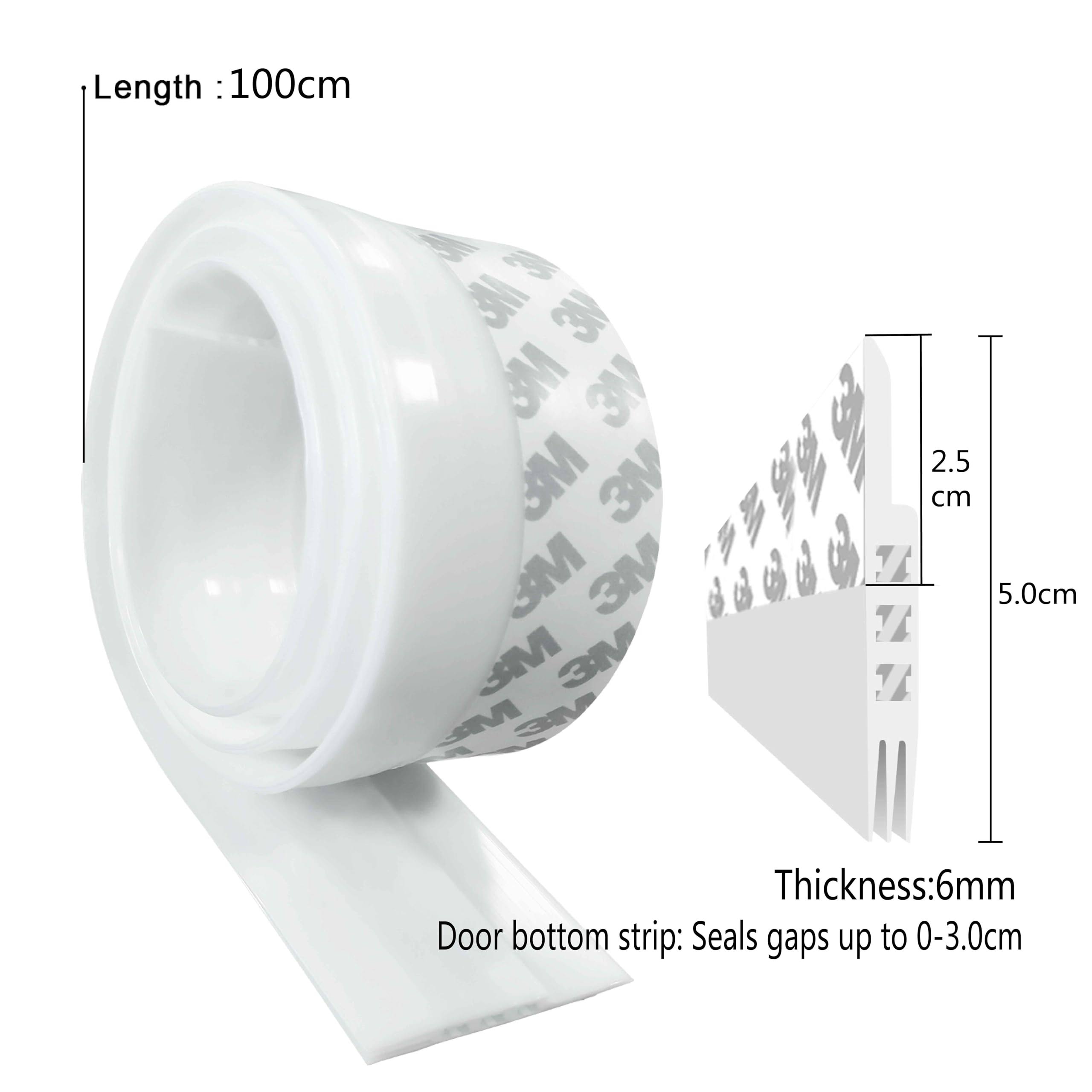 N\C Door Draft Stopper Under Door Draft Blocker Insulator Door Sweep Weather Stripping Noise Stopper Strong Adhesive 39 Length, White, 45, 1.77x39.37