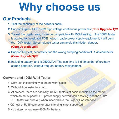 Network Cable Tester,RJ45 Tester Ethernet Tester PoE Tester Cat8 Cat7 Cat6 Continuity Tester Cable Tester Network Tester Ethernet Cable Teste [QC