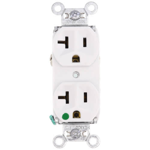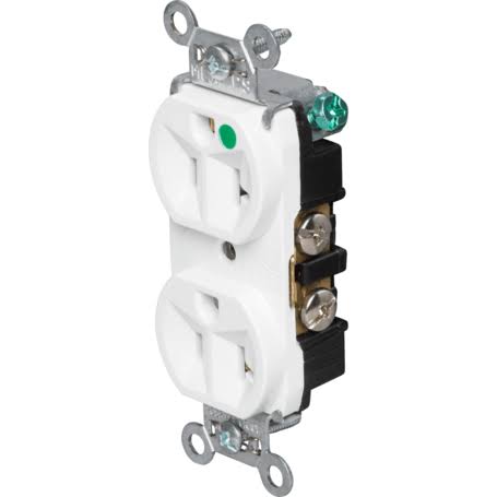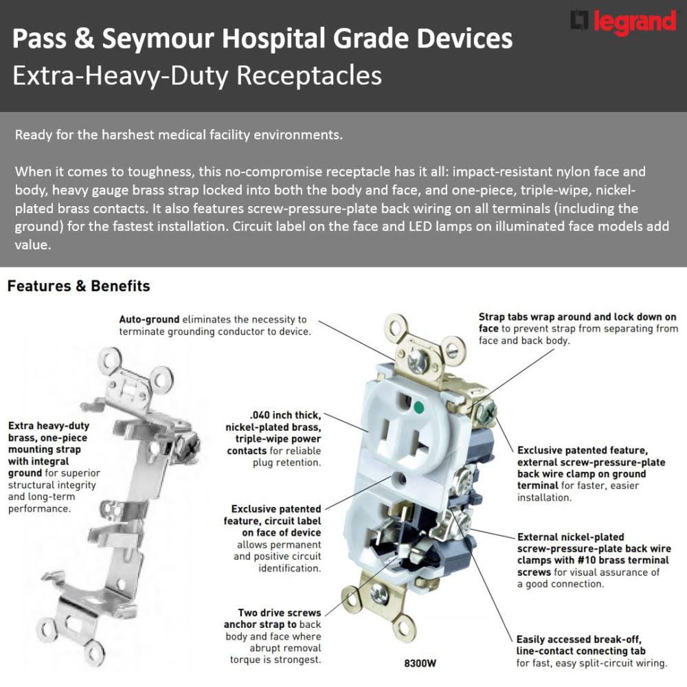 Pass & Seymour 8300-HW Heavy Duty Hospital Grade Duplex Receptacle, 20A 125V, 5-20R,White