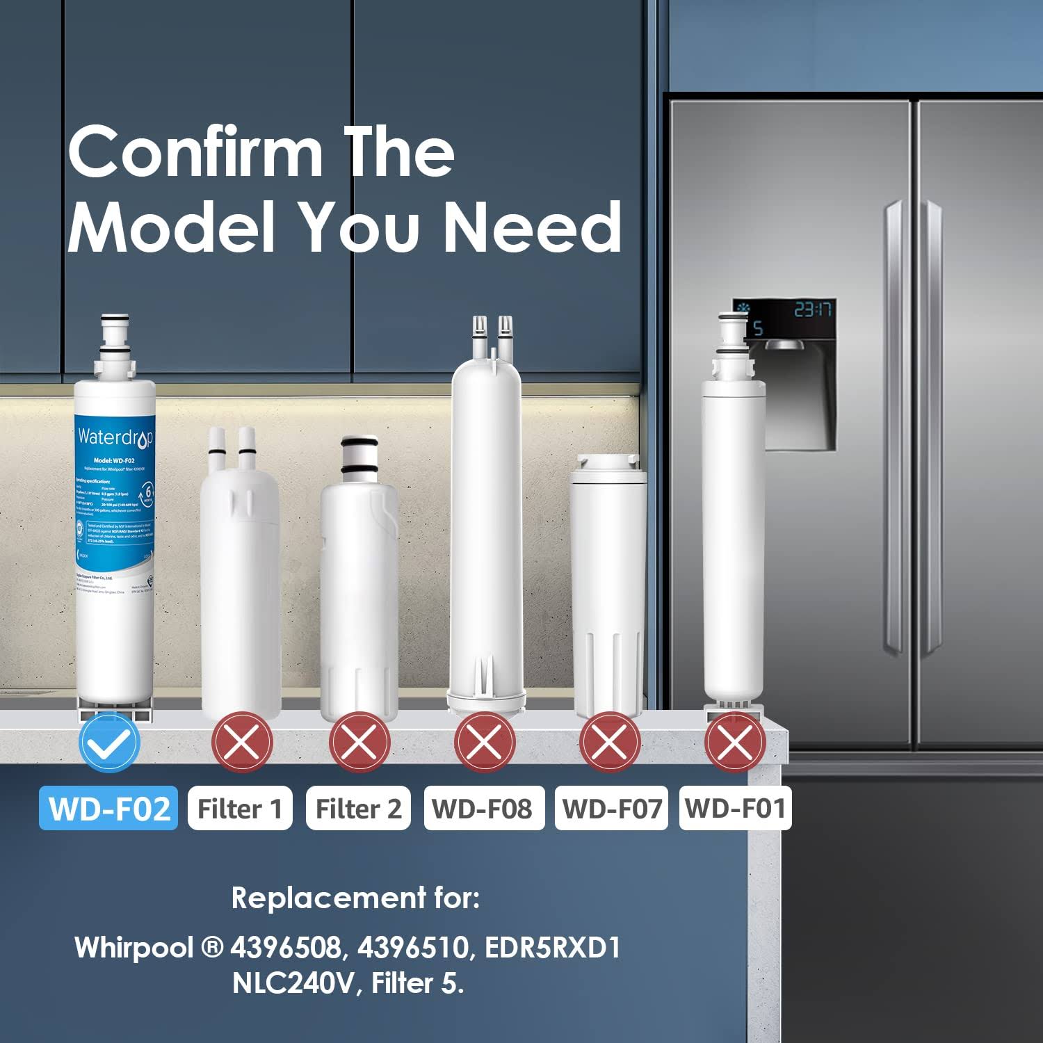 Waterdrop 4396508 Refrigerator Water Filter Replacement for Whirlpool 4396508, 4396510, Kenmore 46-9010, EveryDrop Filter 5, Nlc240v, EDR5RXD1, Pur