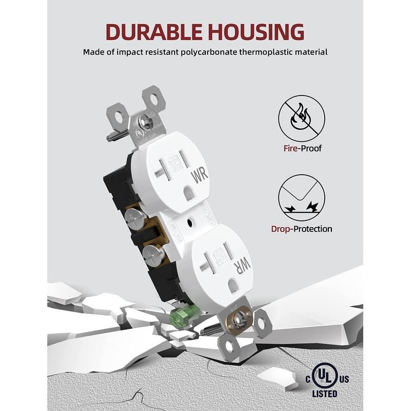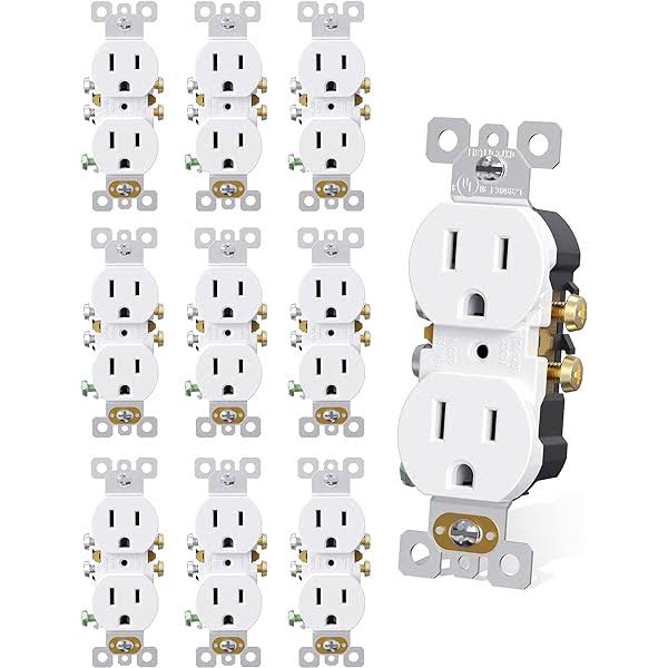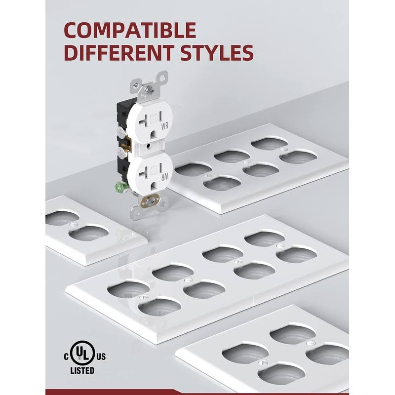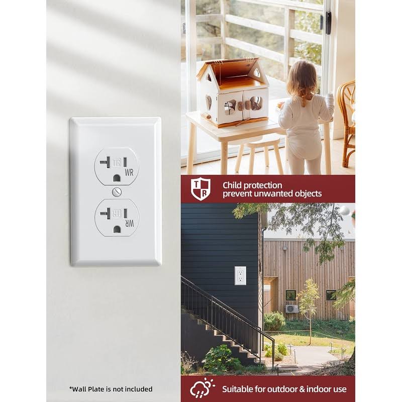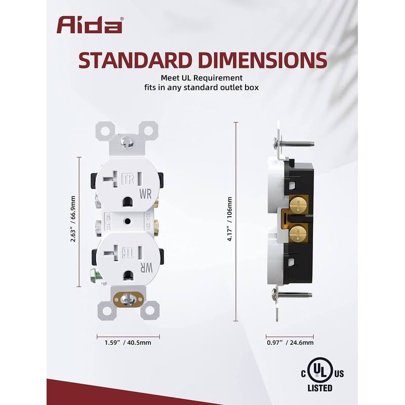 Aida Duplex Receptacle Outlet, 20Amp 125V Wall Outlet, Residential, 3-Wire, Self-Grounding, UL Listed, Push & Side Wire, Whit