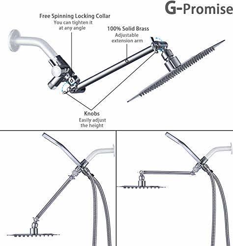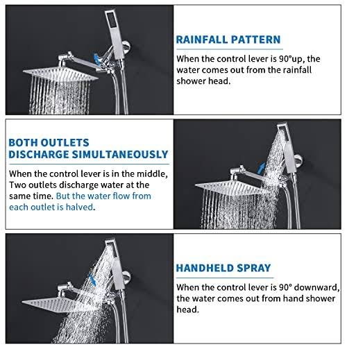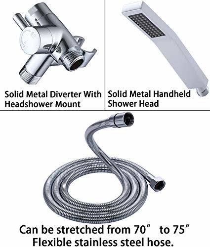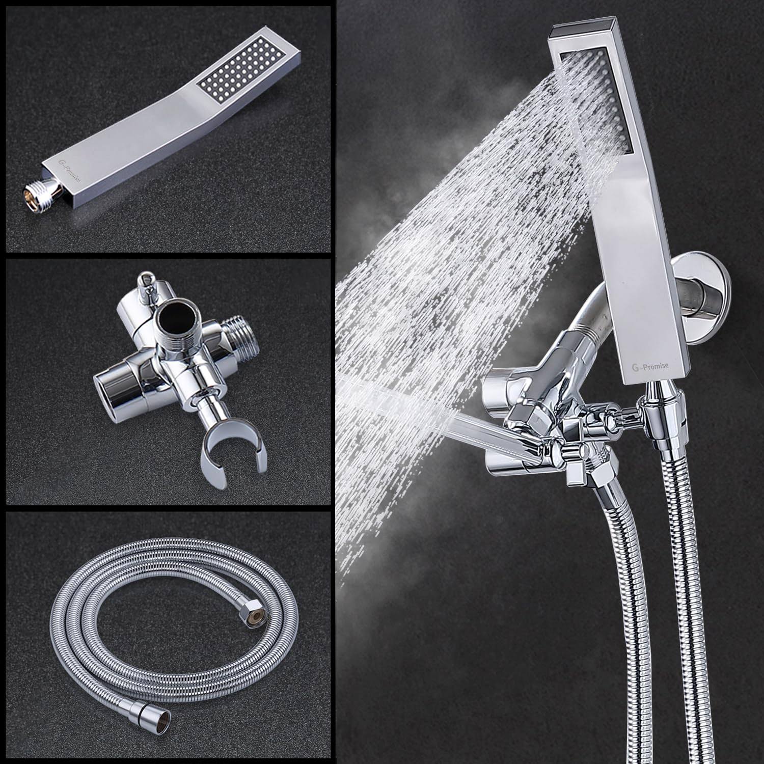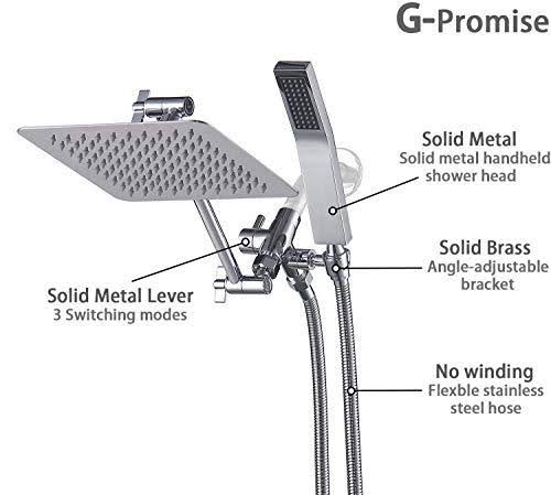G-Promise All Metal Dual Square Shower Head Combo | 8" Rain Shower Head | Handheld Shower Wand with 71" Extra Long Flexible Hose | Smooth 3-Way