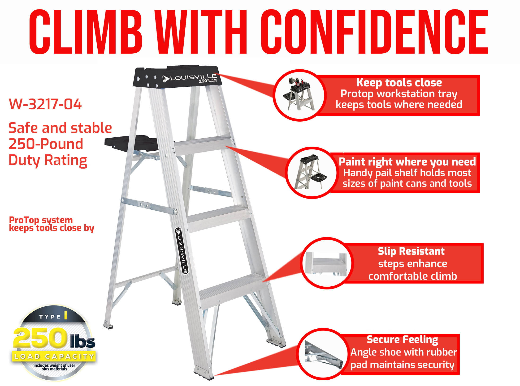 Louisville Ladder 4' Aluminum Step Ladder 250-lb Capacity W-2112-04S