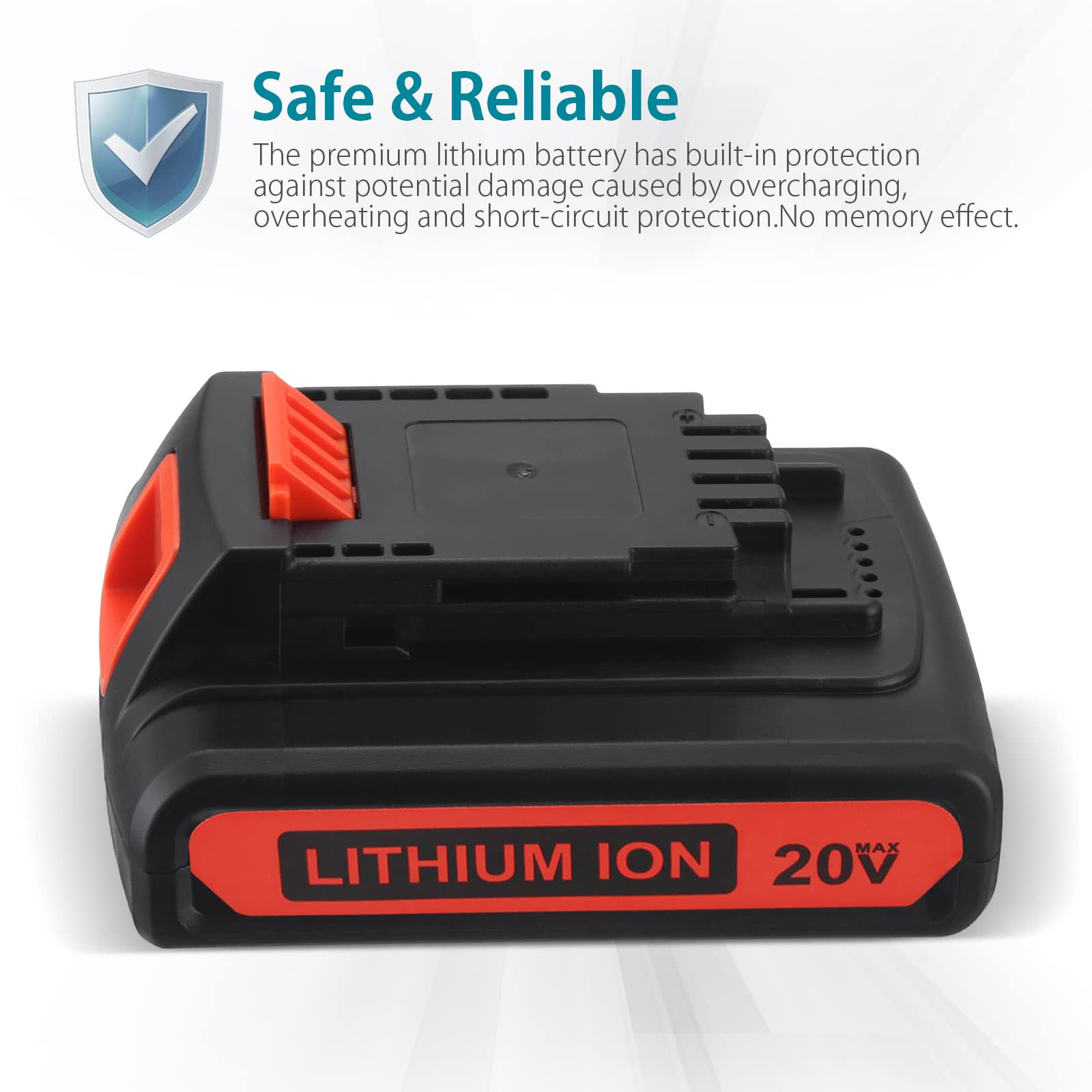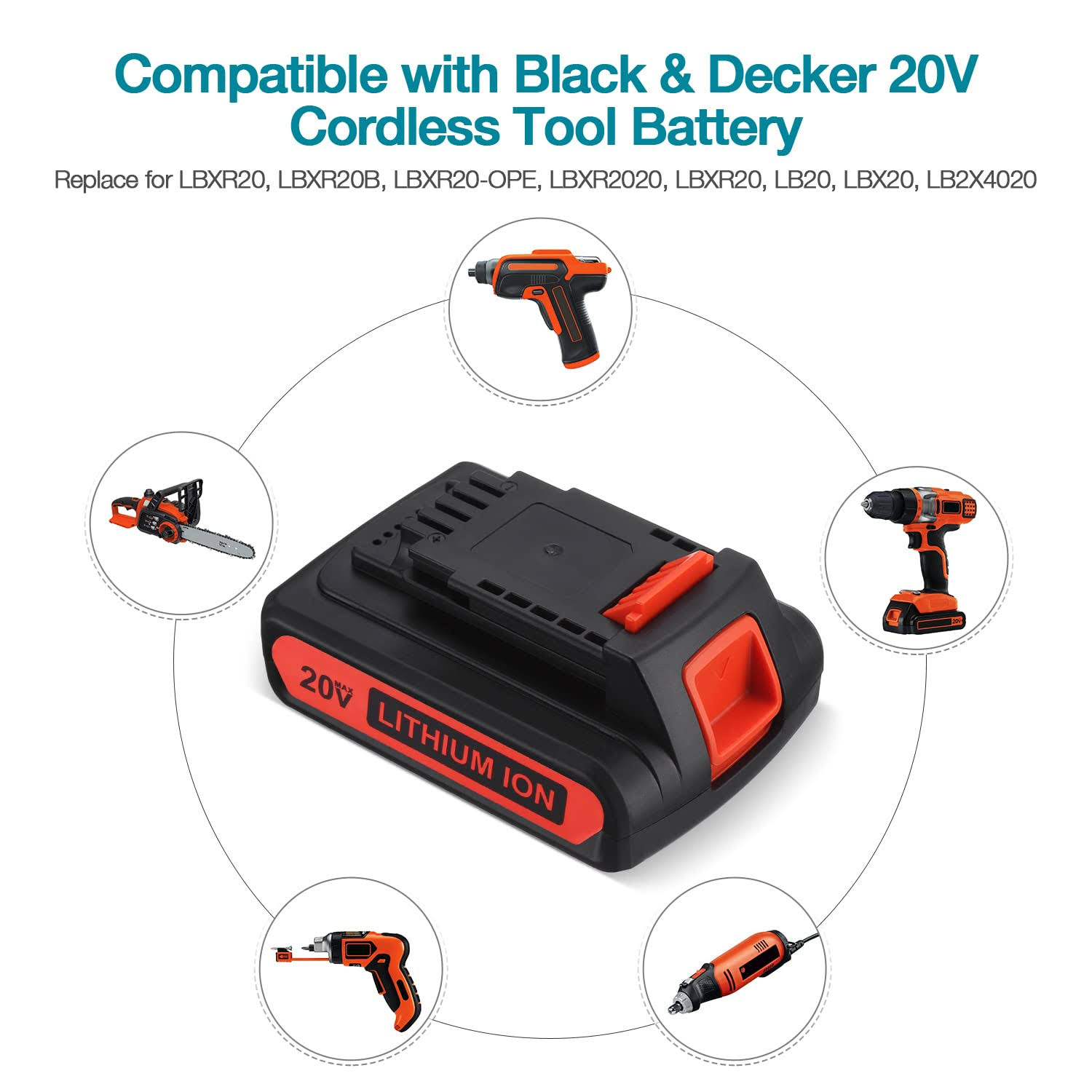 2 Packs 20V Replacement Battery and Charger for Black and Decker 20V Max 3.0Ah,LBXR20 LB20 Lbx20 LBX4020 Extended Run Time Cordless Power Tools