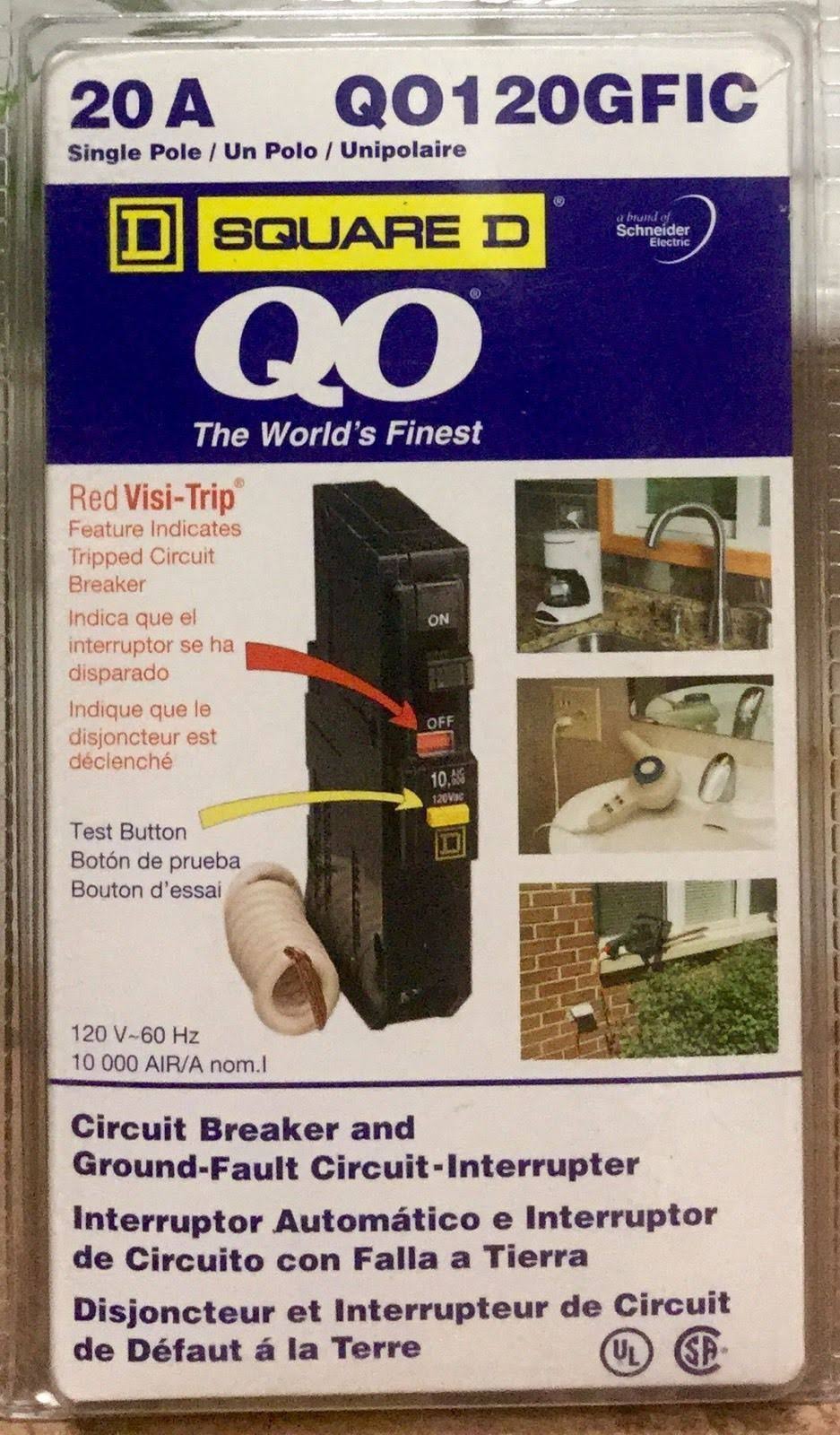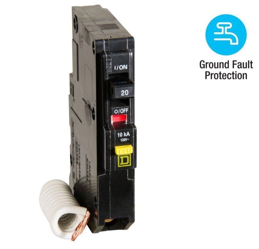 Square D Single Pole Ground Fault Circuit Breaker, 20 A
