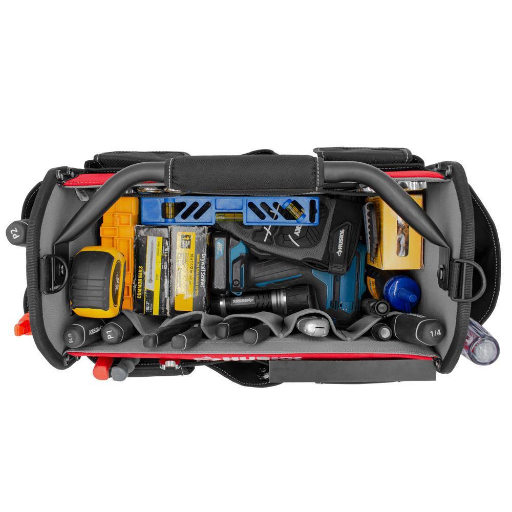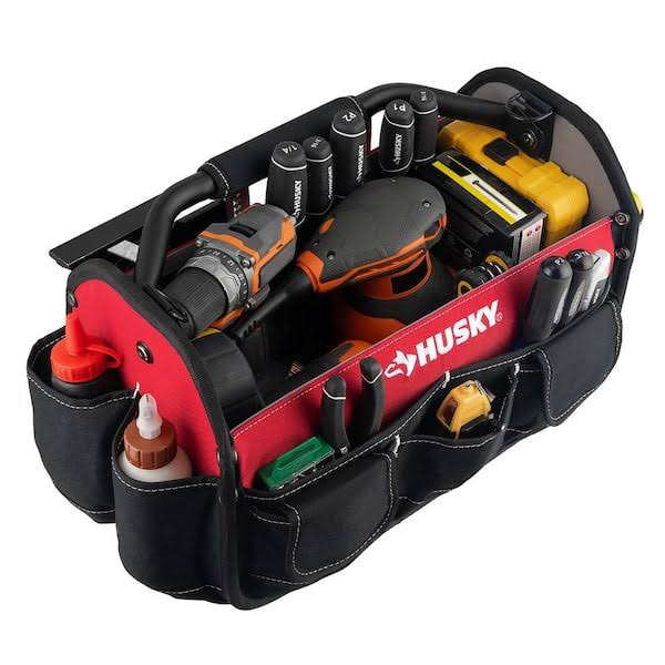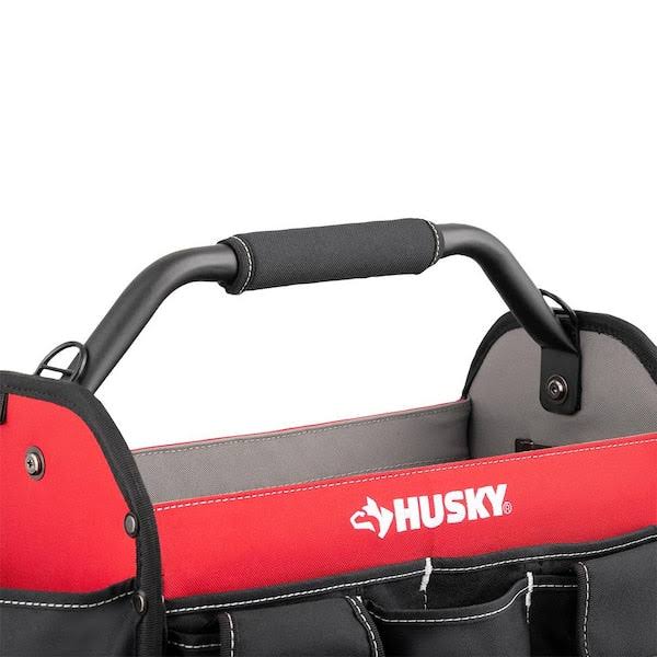 Husky 17 in. Open Top Weather Resistant Tool Tote Bag in Red with 18 Total Pockets and Heavy-Duty Rotating Handle, Men's