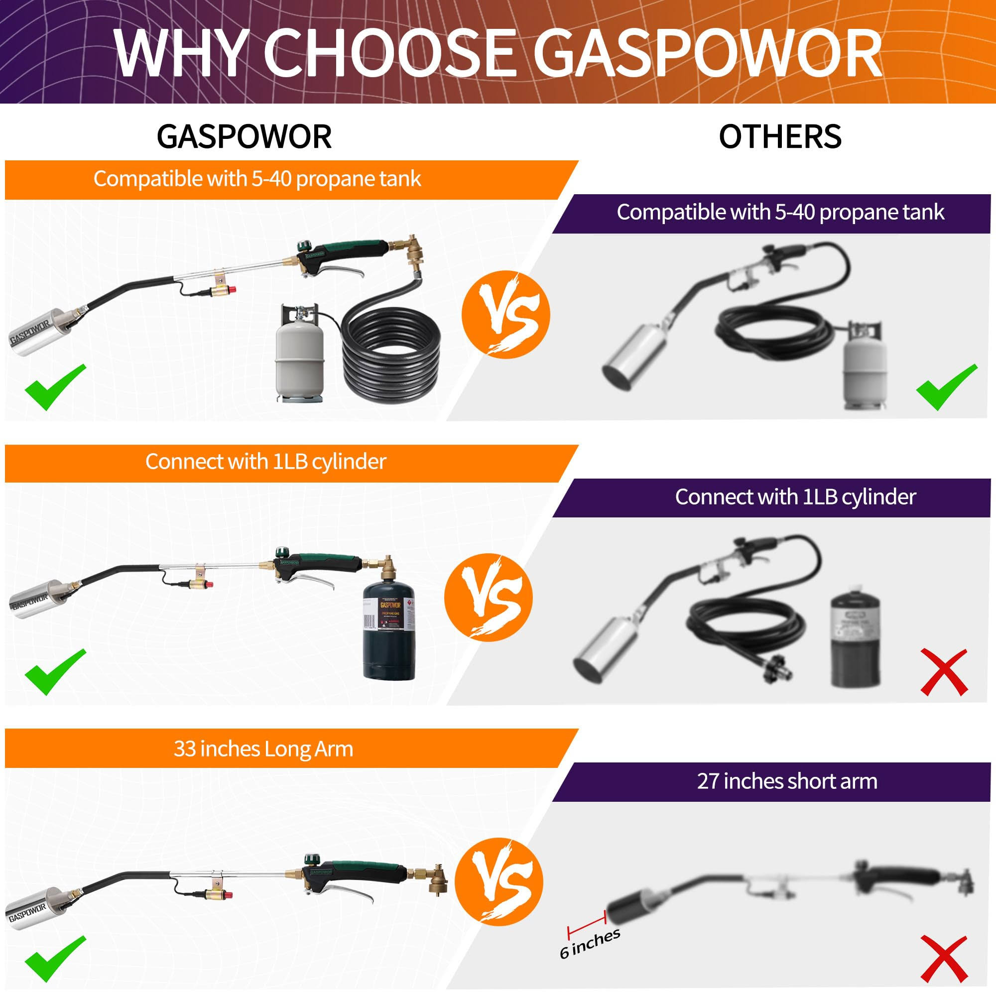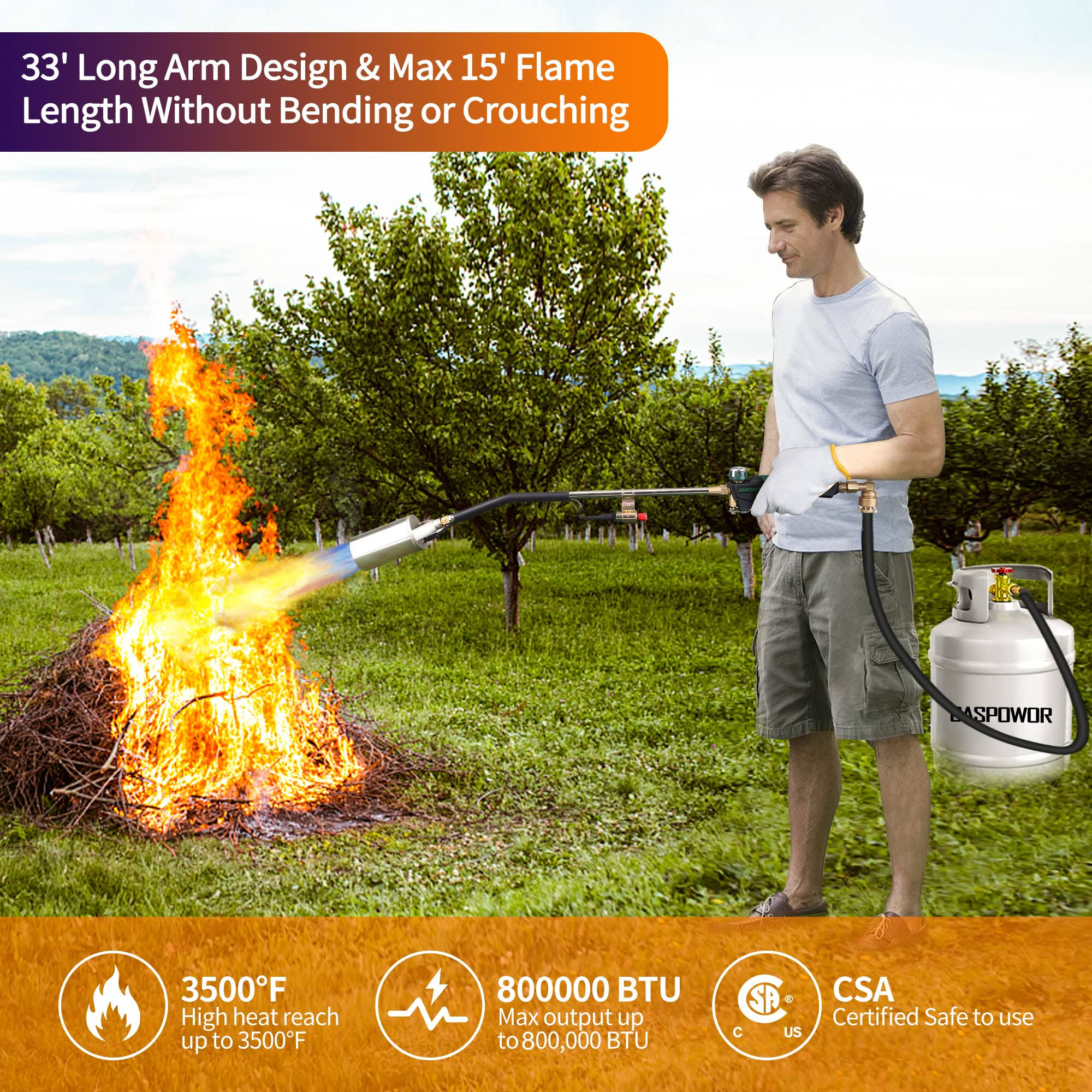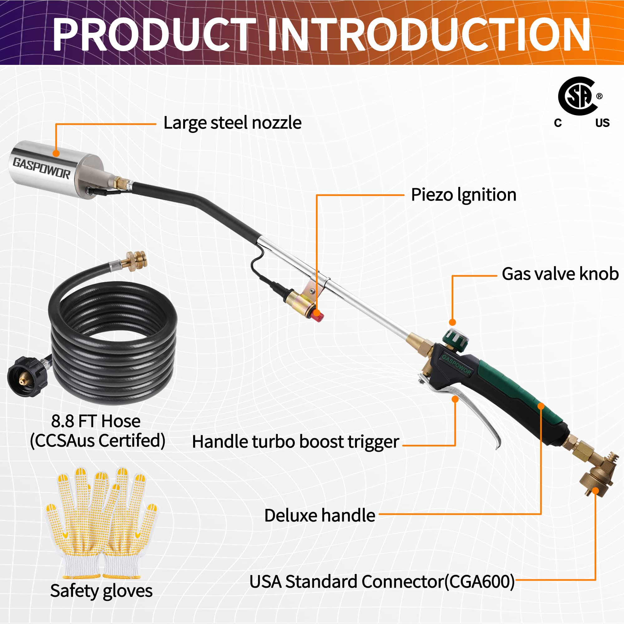 GASPOWOR Heavy Duty Weed Torch,Propane Torch Weed Burner with 8.8 ft Hose(CSA),800,000 BTU, Self Igniting Flame Weeder for Weeding,Roof Asphalt,Snow