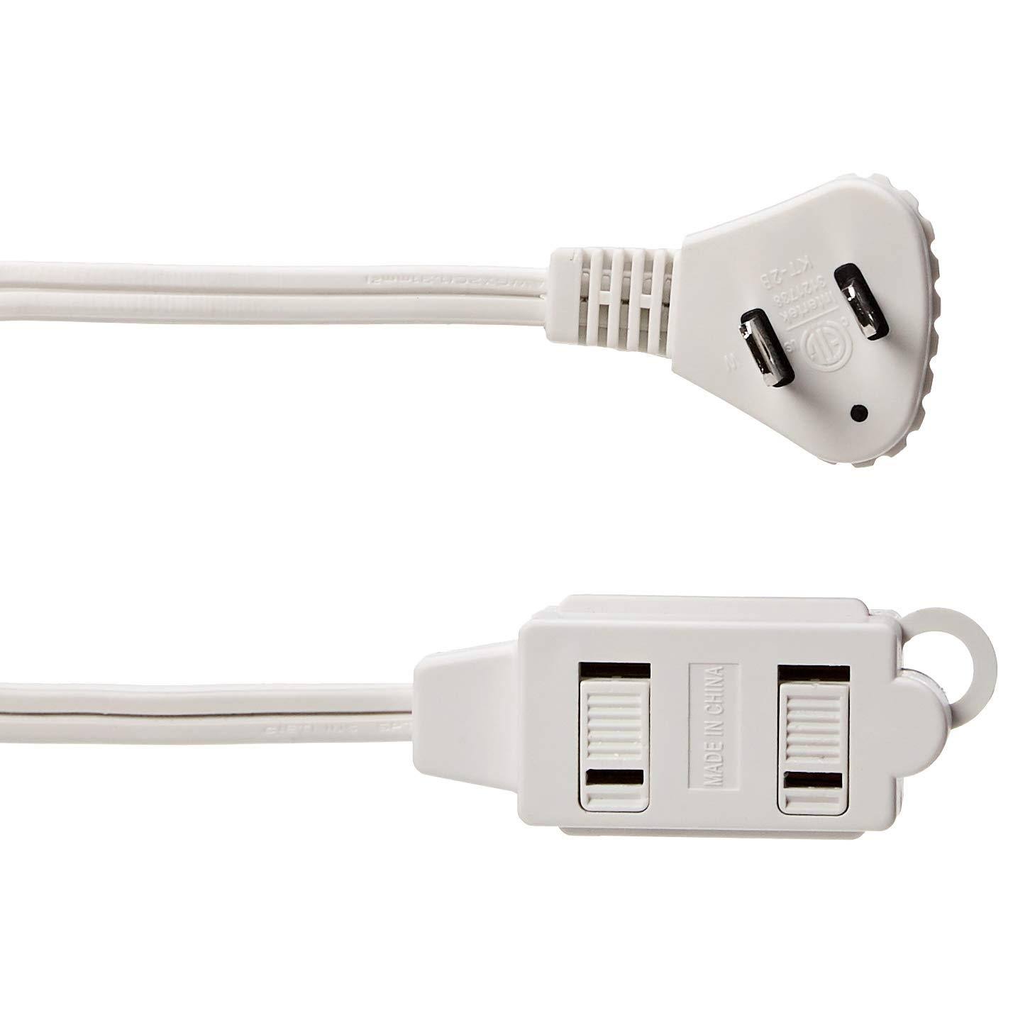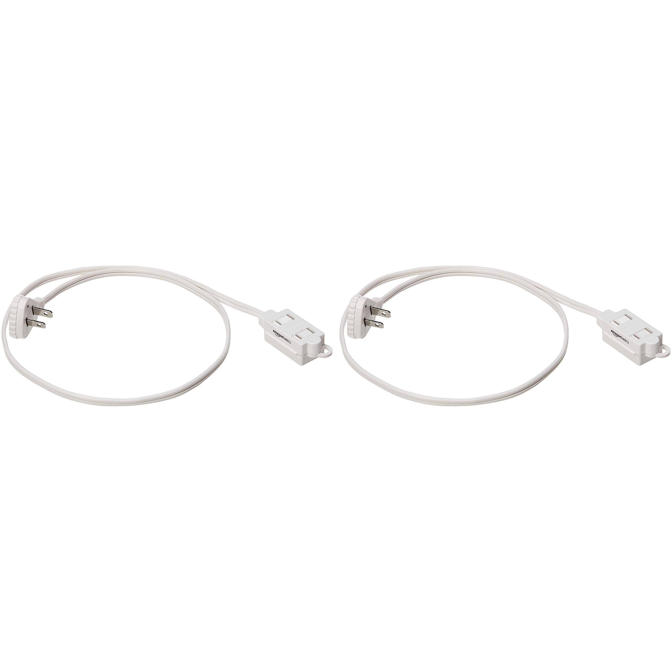 Amazon Basics 3-Foot 2-Prong Indoor Extension Cord Power Strip- Flat Plug- 13 Amps, 1625 Watts, 125 VAC- 2-Pack, White