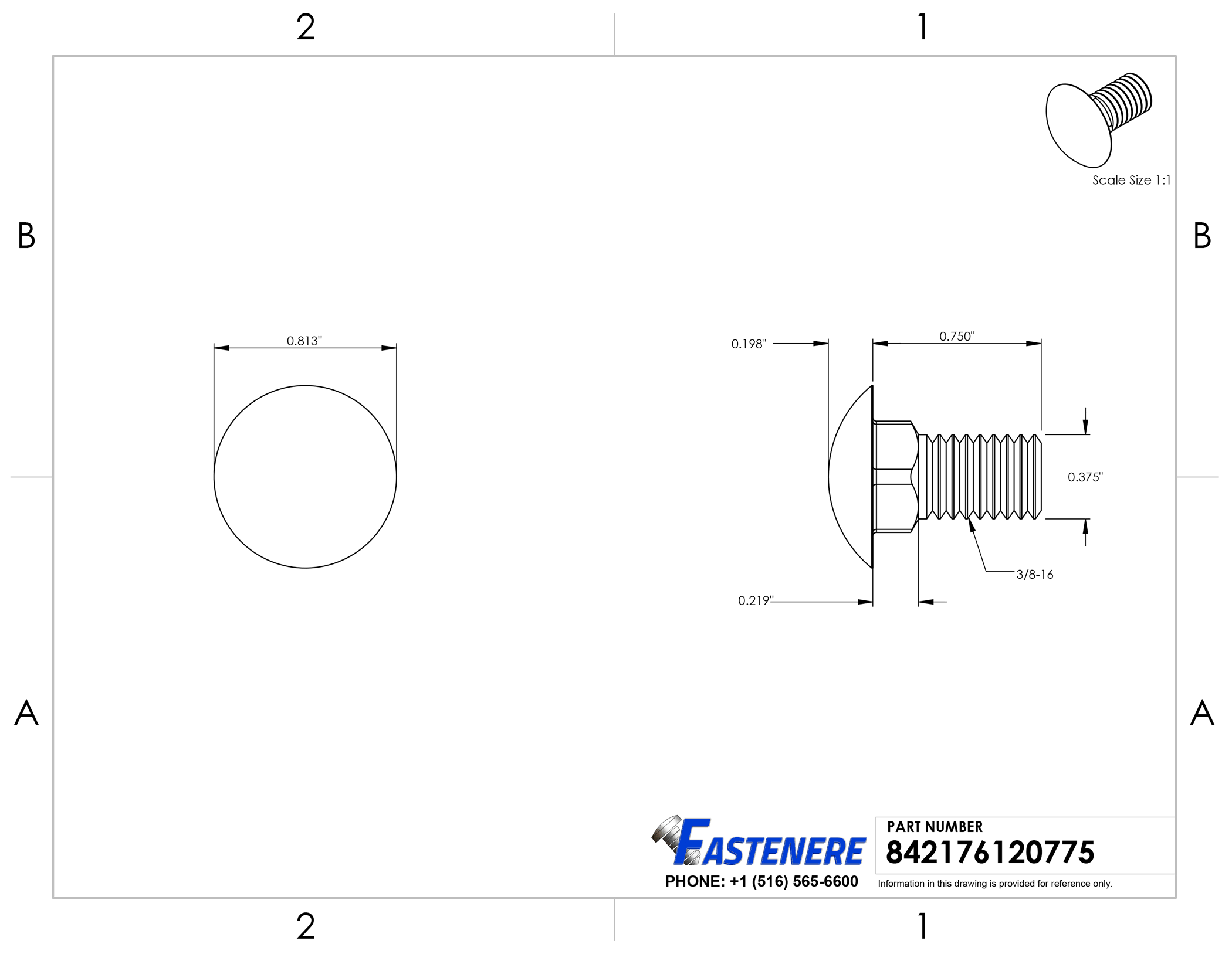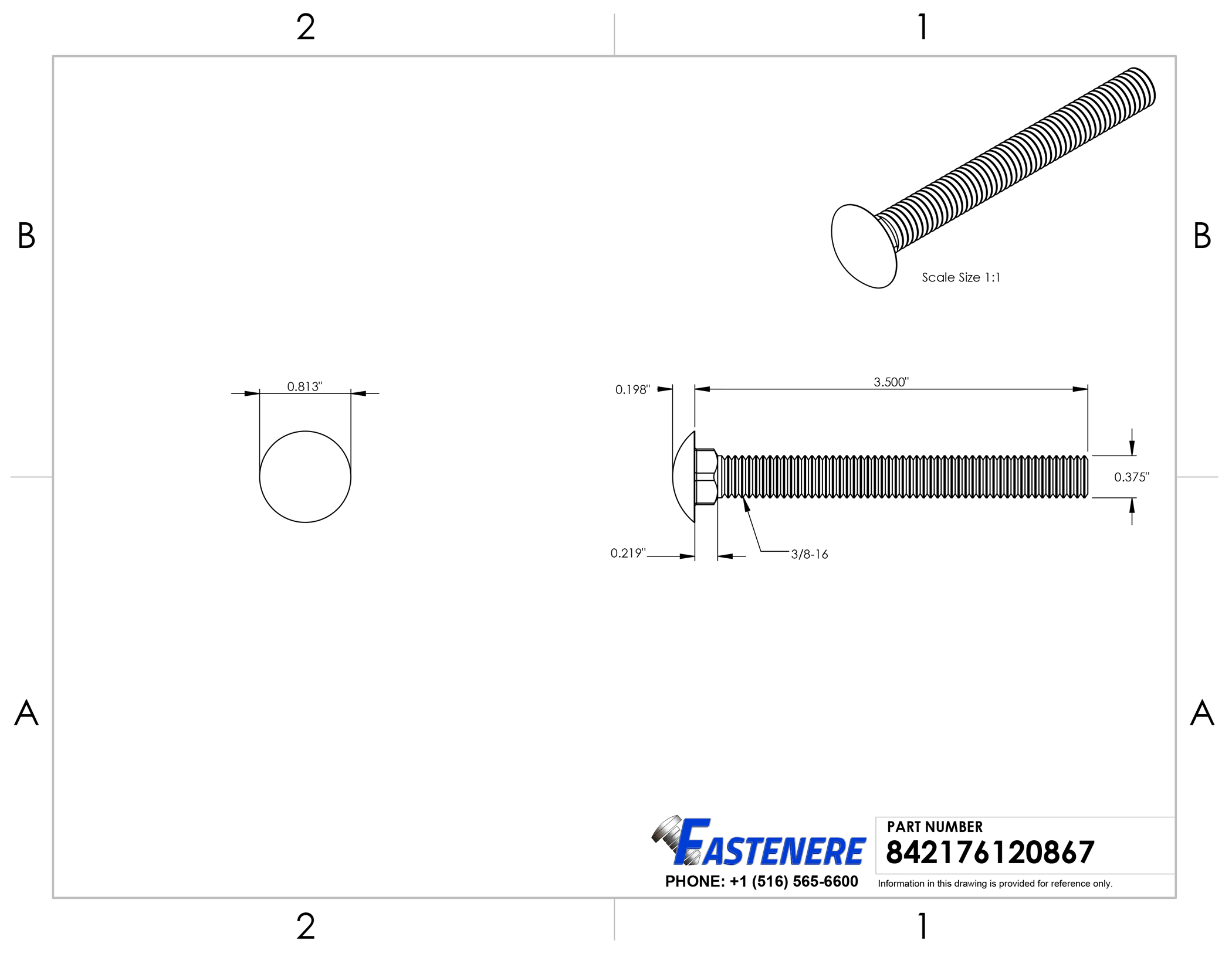 Fastenere 3/8-16 x 3-1/2" Carriage Bolts Fully Threaded Stainless Steel 18-8 Qty 10