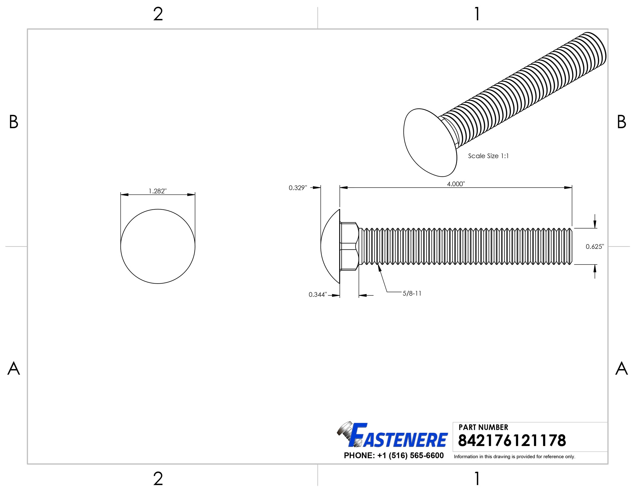 5/8-11 x 4" Carriage Bolts Fully Threaded Stainless Steel 18-8 Qty 5