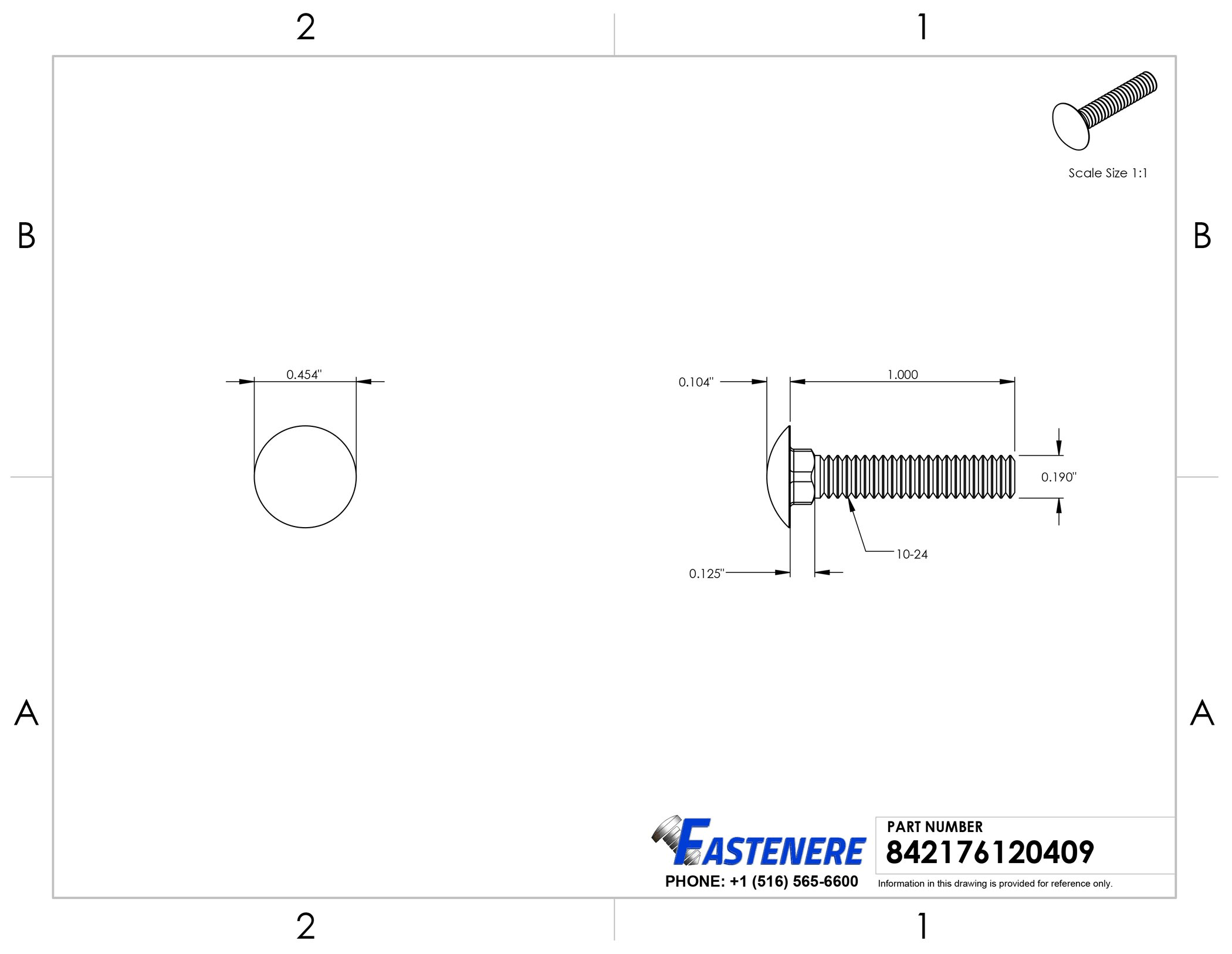 10-24 x 1" Carriage Bolts Fully Threaded Stainless Steel 18-8 Qty 50