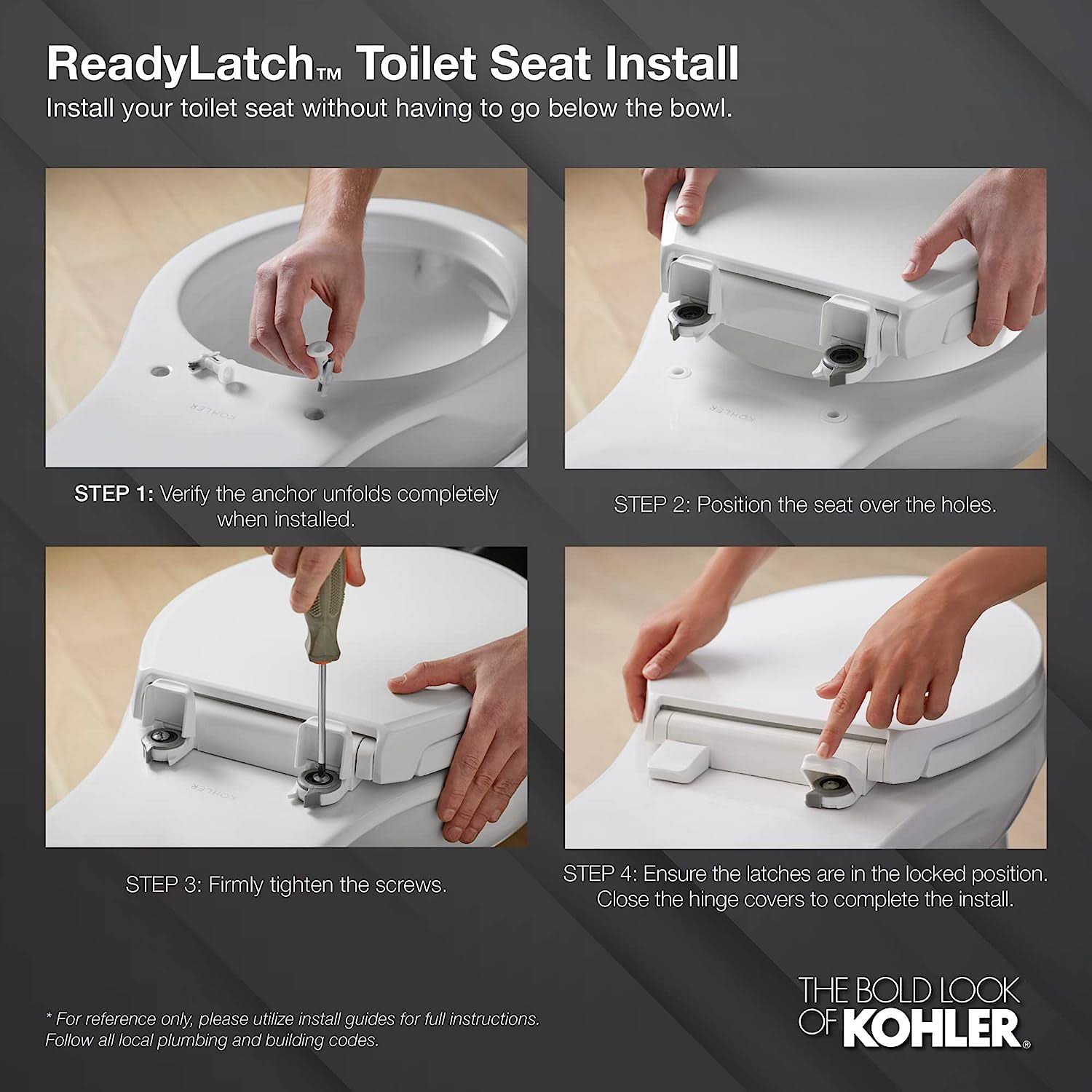 Kohler K-4639-RL Cachet ReadyLatch Quiet-Close Round-Front Toilet Seat- Ice Grey