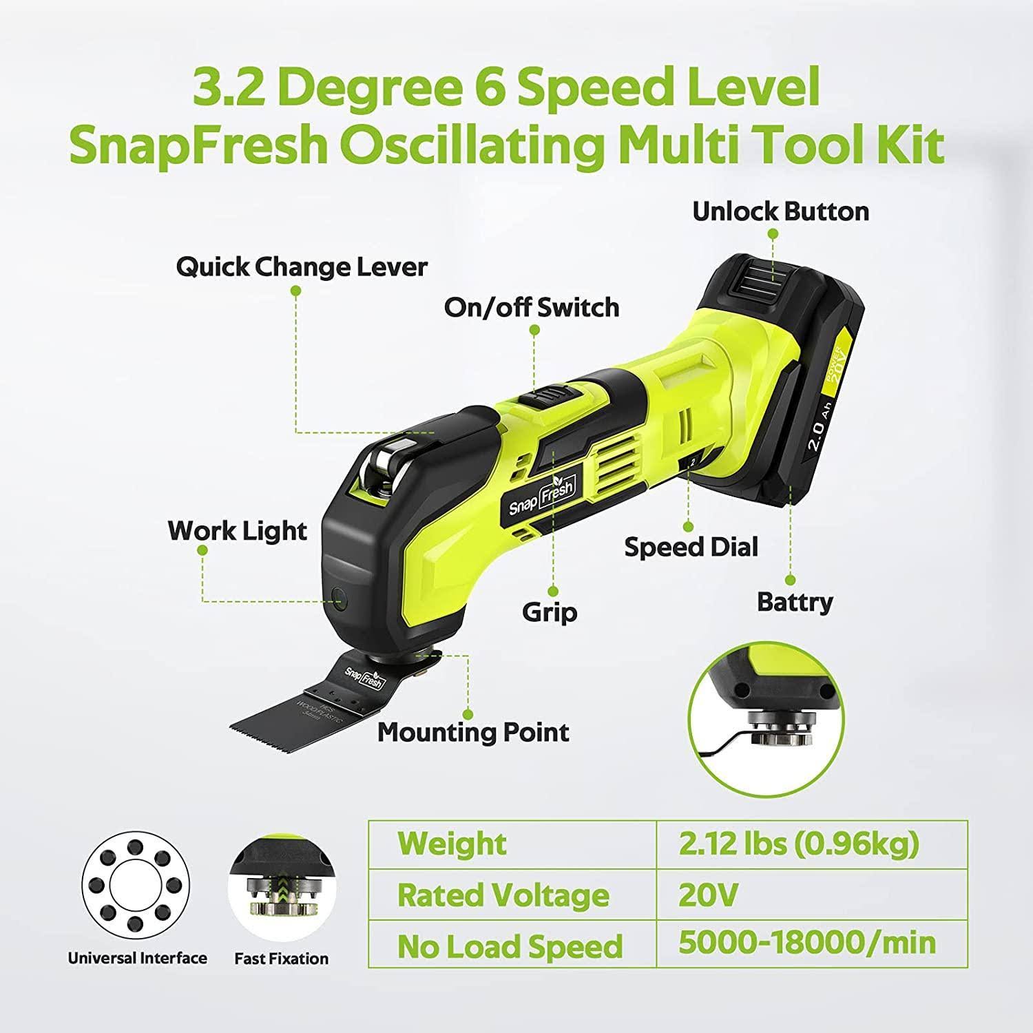 20V Oscillating Tool with 2.0Ah Li-ion Battery and Charger