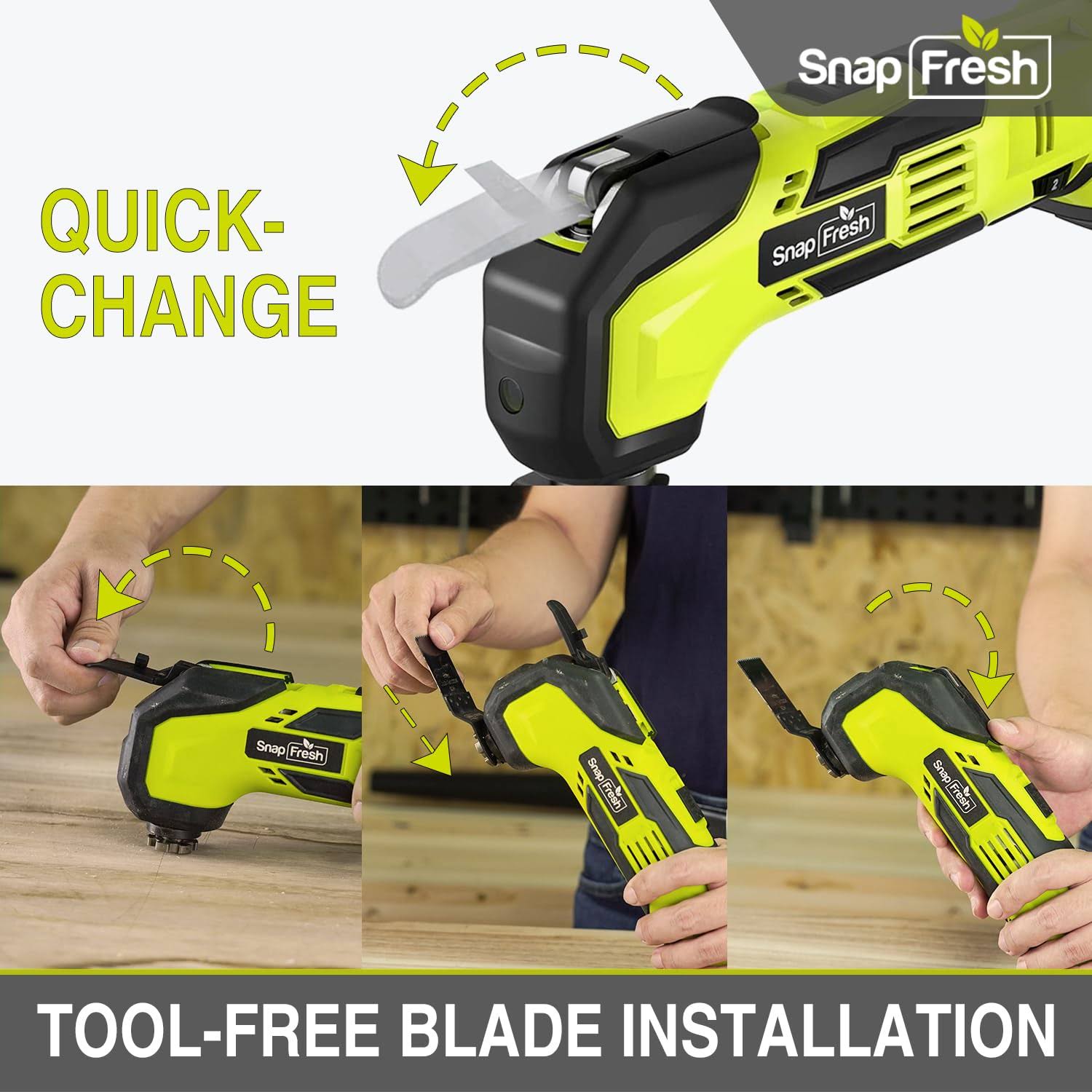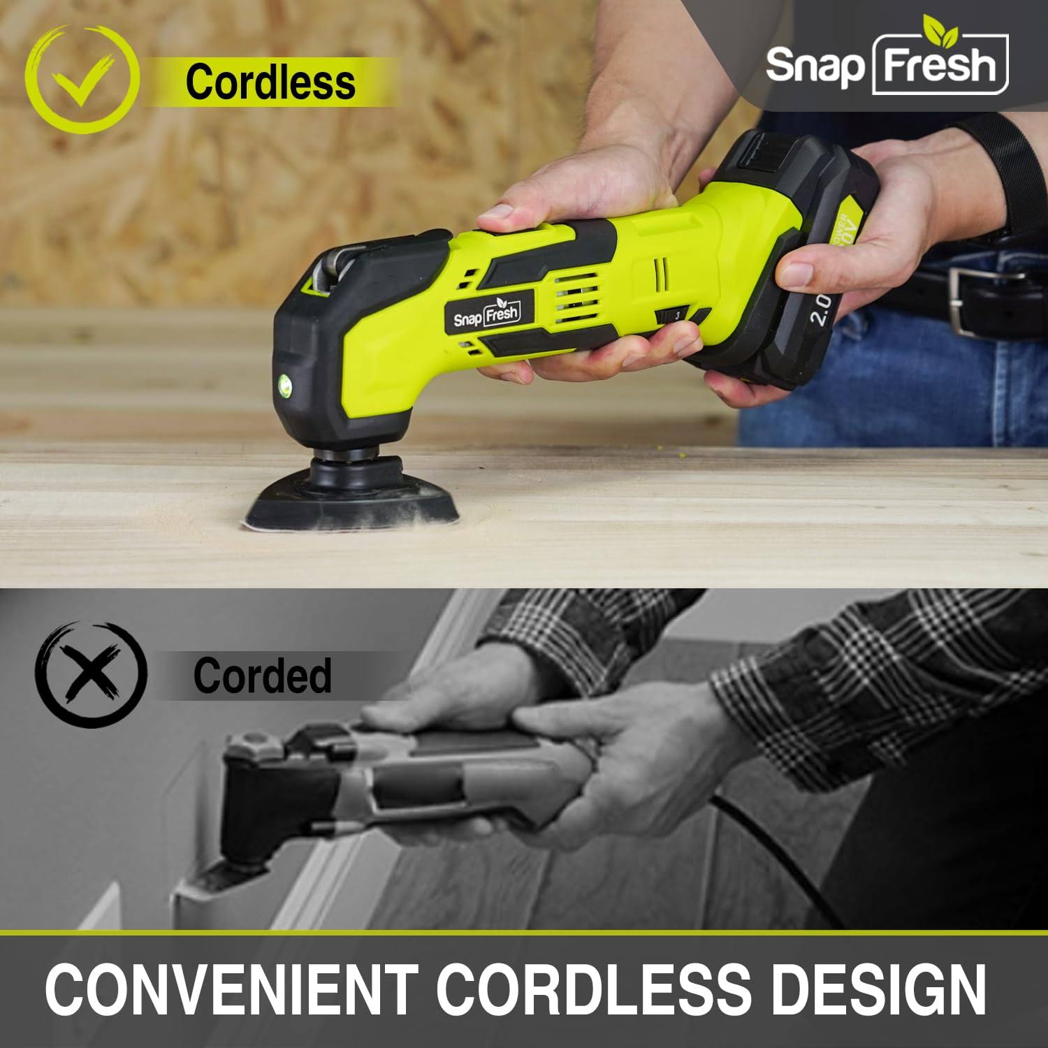 Cordless Oscillating Tool, SnapFresh 20V Oscillating Multi-Tool with 6 Speed, 3.2��Oscillating Angle, 22pcs Accessories, 2.0Ah Battery and Fast