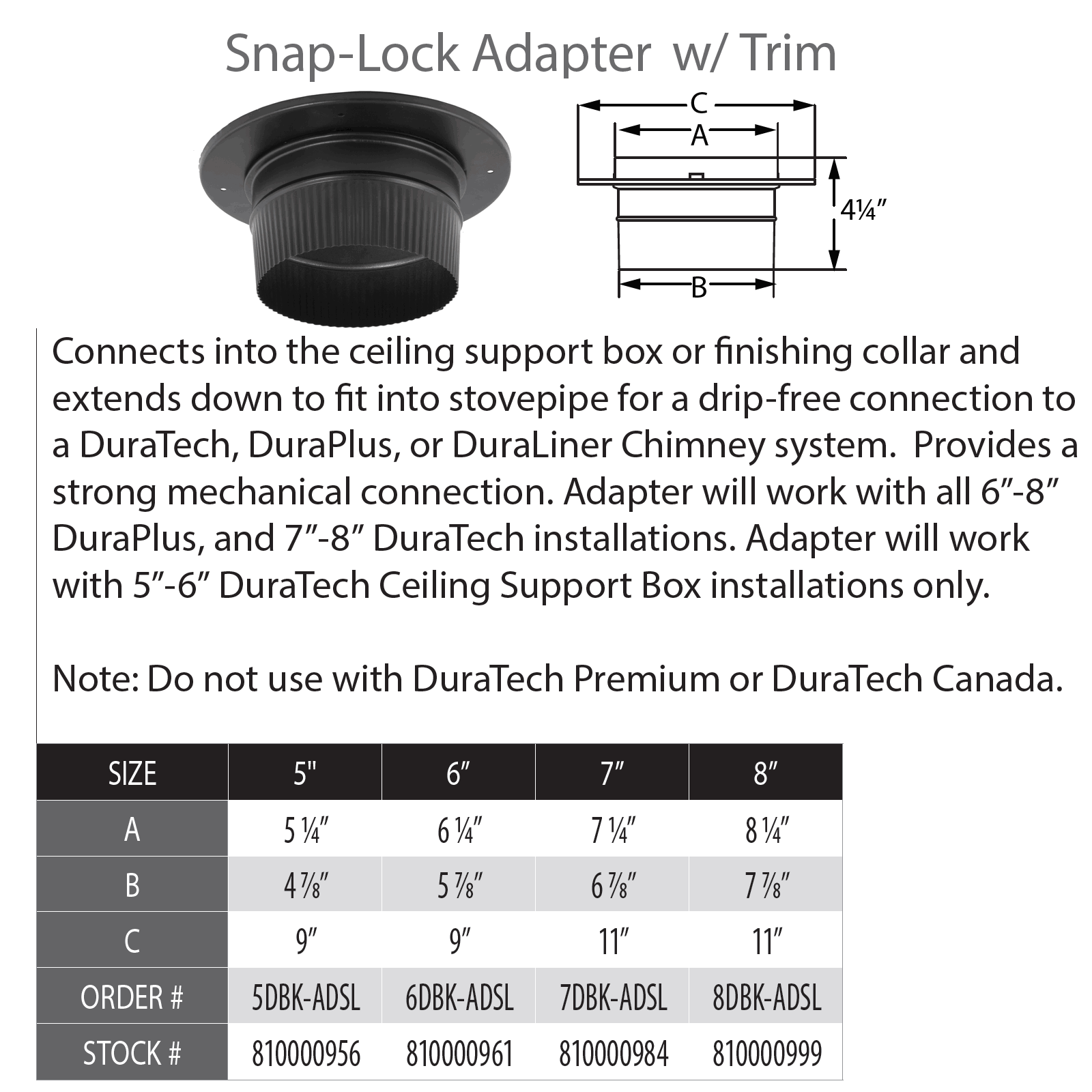 DuraVent 6" Snap-Lock Adapter with Trim- 6DBK-ADSL
