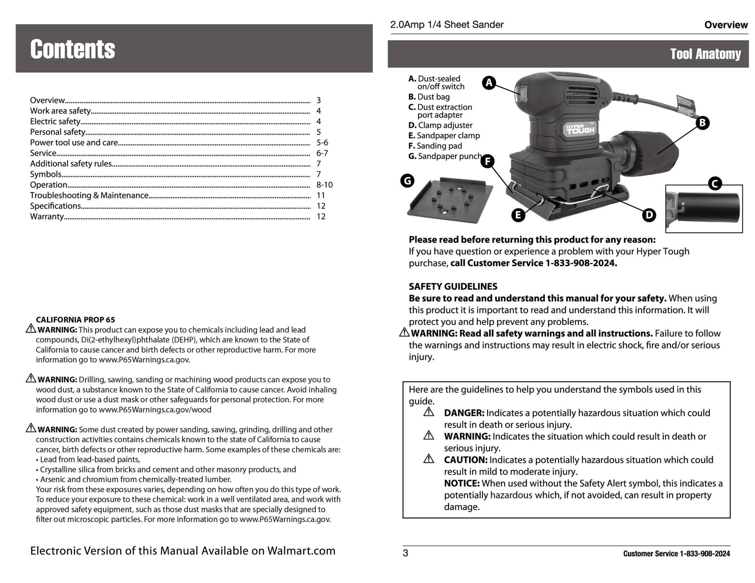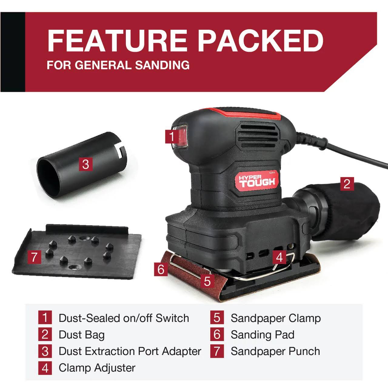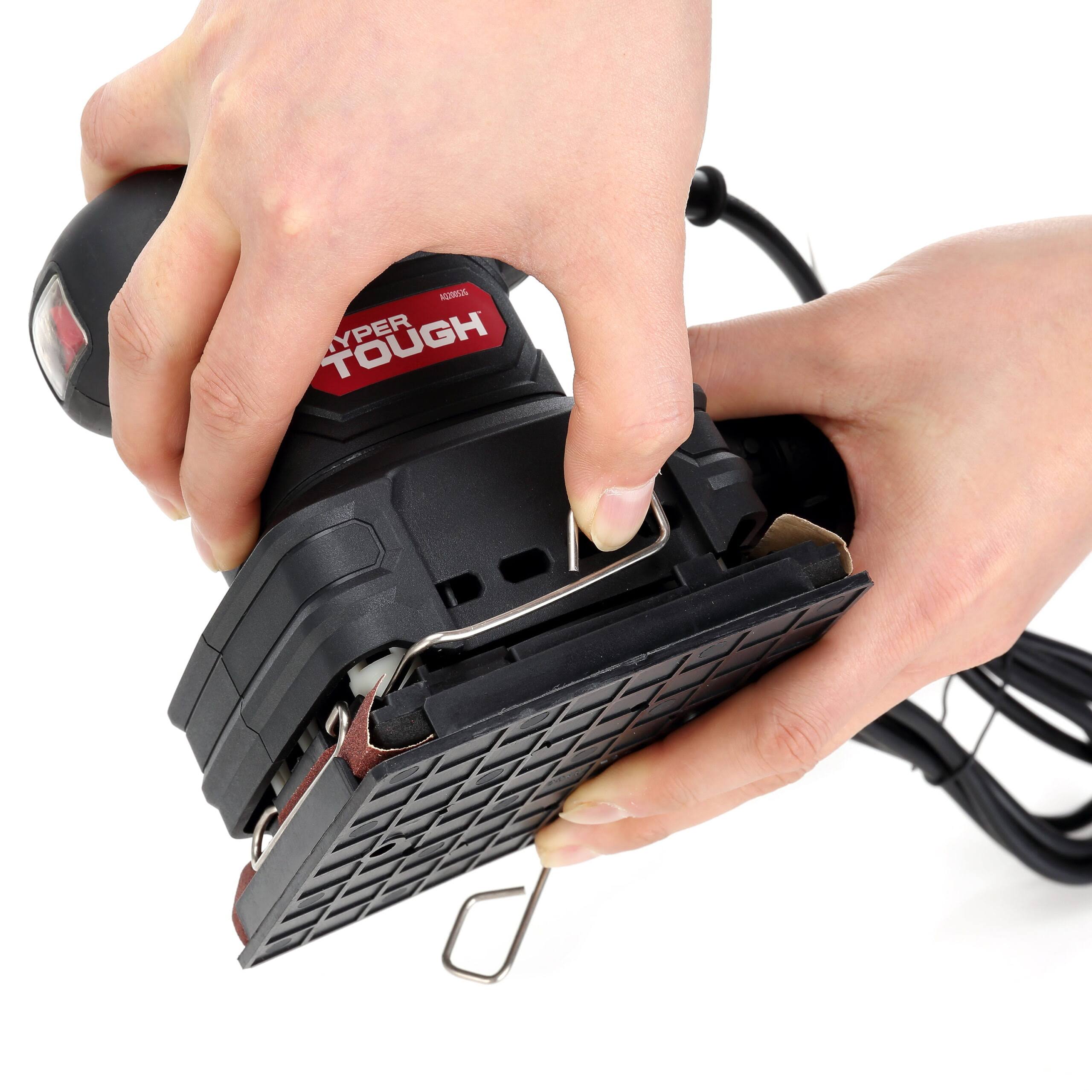 Hyper Tough 2 Amp Corded 1/4 Sheet Palm Sander with Dust Bag, Vacuum Hose Adapter, Punch Plate & 3 Sanding Sheets (60, 80 & 120 Grit)