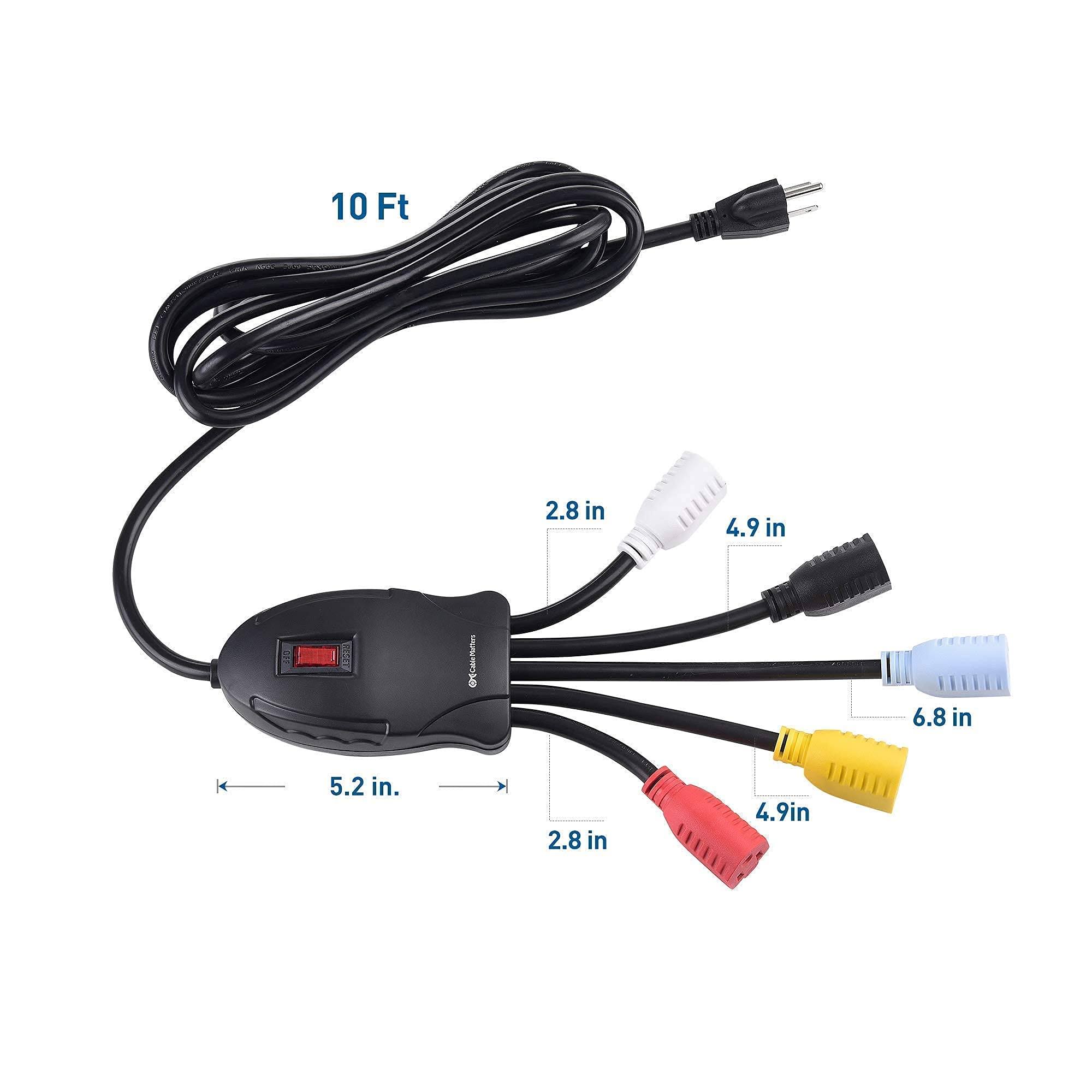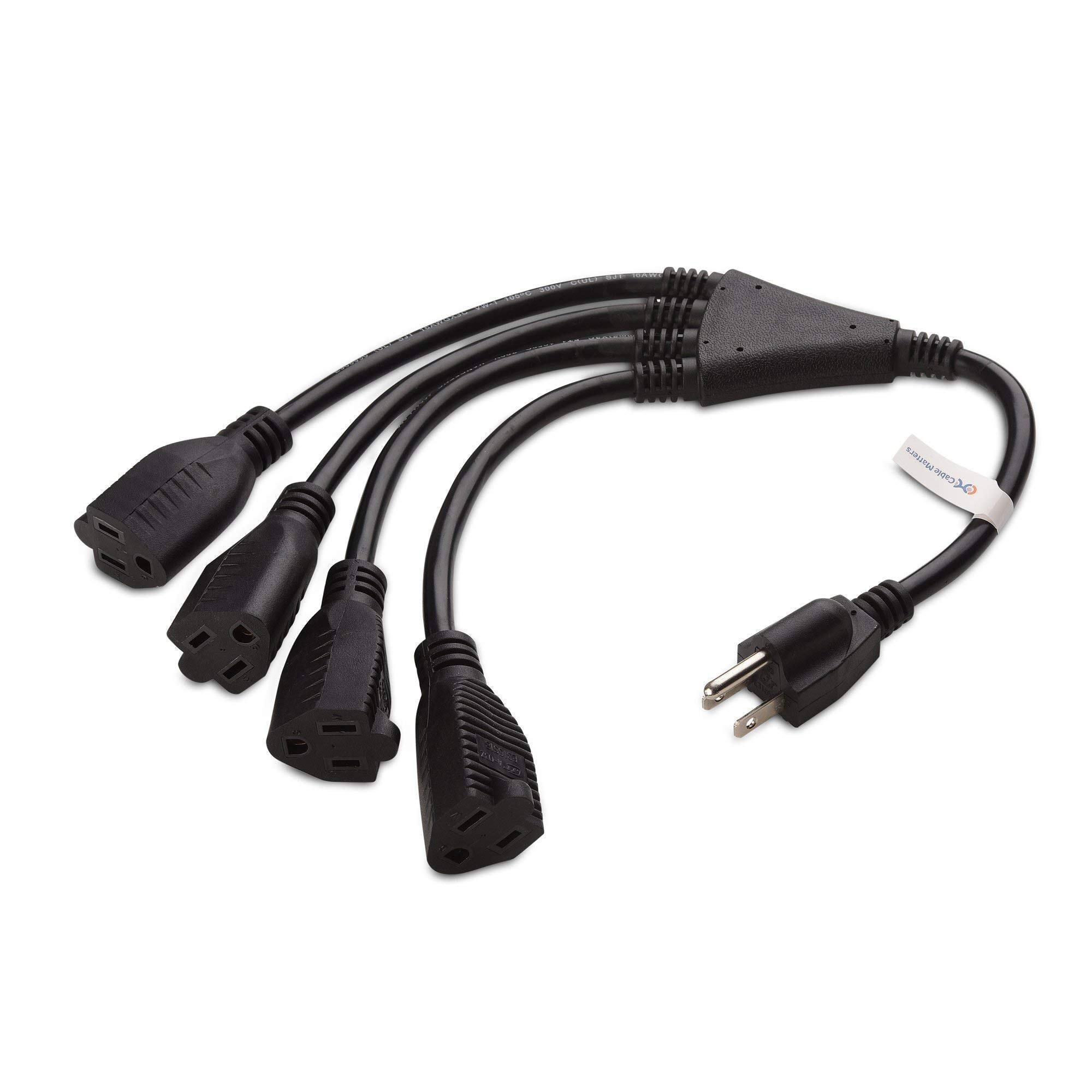 Cable Matters (2-Pack) 4-Outlet AC Power Cord Y-Splitter- 1.5 Feet